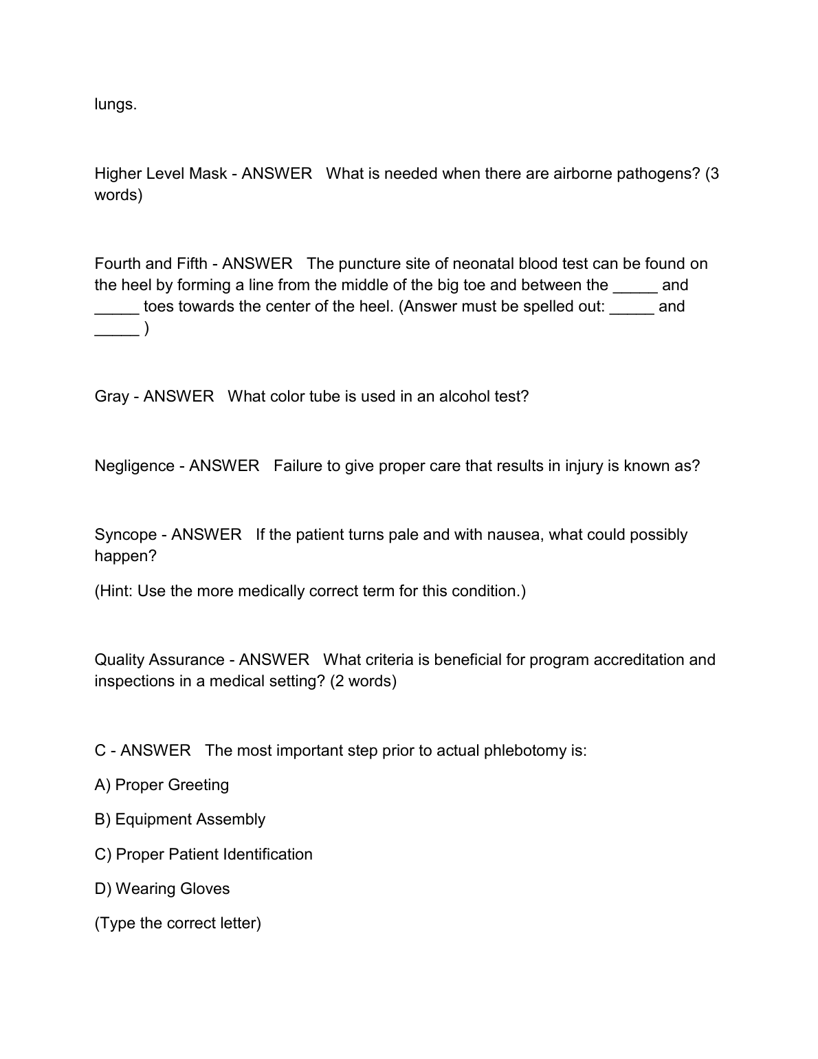 TEST BANK FOR NHA Phlebotomy (1) (+140 Questions and Answers) COMPLETE SOLUTION LATEST UPDATE $18.00 NHA Phlebotomy Certification EXAM 2023/2024 $16.00 NHA Phlebotomy Exam with Complete Solutions 2023 $16.00 NHA PHLEBOTOMY (2022/2023) QUESTIONS AND ANSWERS RATED A+ $16.00 NHA Phlebotomy certification EXAM/Phlebotomy NHA Certification Questions With Complete Solutions |Verified| 2023 $16.00 NHA Phlebotomy - Study Guide - Part 2 NEW SOLUTION $16.00 NHA Phlebotomy Practice Examination Solution Guide BRAND NEW $16.00 NHA Phlebotomy (Test 3) Questions Answered 100% Correct 2023 |Verified $16.00 NHA Phlebotomy Exam Questions with Complete Solutions $16.00 NHA Phlebotomy Exam Questions and Answers 2023 $16.00 NHA Phlebotomy Exam Questions with Complete Solutions RATED A+ $16.00 TEST BANK NHA Phlebotomy (1) (+140 Questions and Answers) $16.00 NHA PHLEBOTOMY NATIONAL EXAM QUESTIONS AND ANSWERS 100% PASS $16.00 NHA Phlebotomy Technician Study Guide 2023 $16.00 NHA Phlebotomy Study Guide - Pt 1 Questions with Correct Answers RATED A+ $16.00 NHA Phlebotomy Practice Examination with Accurate solution. LATEST UPDATE. Graded A+ $16.00 NHA Phlebotomy certification Exam Questions and Answers 2023/2024 $16.00 NHA PHLEBOTOMY Quiz 12 with Certified Solutions BRAND NEW 2023 $16.00 NHA Phlebotomy practice test (Answered) 2023/2024 $16.00 NHA Phlebotomy Study Guide Questions with Correct Answers 100% CORRECT AND VERIFIED $16.00 NHA Phlebotomy Exam Questions and Answers 2023 $16.00 NHA phlebotomy test Questions Solved Correctly 100% |Verified $16.00 NHA Phlebotomy Exam 2/Phlebotomy NHA Exam 2 Questions Solved 100% Correct 2023 |Verified $16.00 NHA phlebotomy (Test 4) Questions Answered 100% Correct 2023 |Verified $16.00 NHA Phlebotomy Exam Questions with Correct Answers/ Latest SOLUTION $16.00 NHA Phlebotomy Patient Preparation Questions and Answers 100% Complete $16.00 NHA PHLEBOTOMY CERIFICATION EXAM VERIFIED QUESTIONS AND ANSWERS GRADED A+ LATEST 2023/2024 $16.00 NHA Phlebotomy (Test 6) Questions Answered 100% Correct |Verified $16.00 NHA Phlebotomy certification EXAM 2023/2024 $16.00 NHA Phlebotomy (Test 7) Questions Answered 100% Correct |Verified $16.00