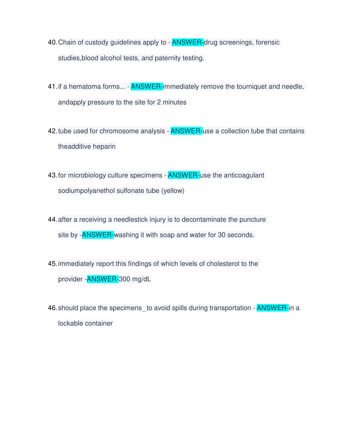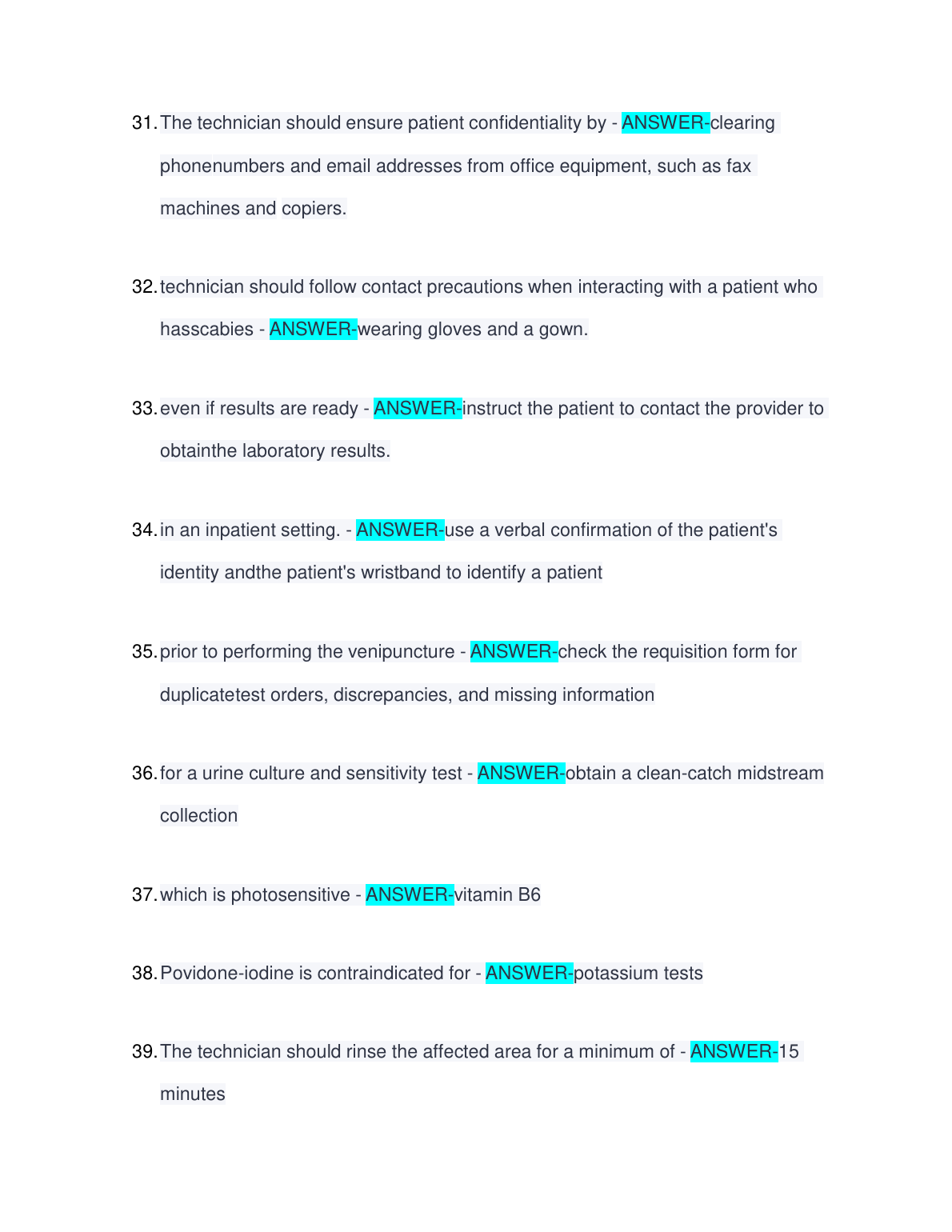 TEST BANK FOR NHA Phlebotomy (1) (+140 Questions and Answers) COMPLETE SOLUTION LATEST UPDATE $18.00 NHA Phlebotomy Certification EXAM 2023/2024 $16.00 NHA Phlebotomy Exam with Complete Solutions 2023 $16.00 NHA PHLEBOTOMY (2022/2023) QUESTIONS AND ANSWERS RATED A+ $16.00 NHA Phlebotomy certification EXAM/Phlebotomy NHA Certification Questions With Complete Solutions |Verified| 2023 $16.00 NHA Phlebotomy - Study Guide - Part 2 NEW SOLUTION $16.00 NHA Phlebotomy Practice Examination Solution Guide BRAND NEW $16.00 NHA Phlebotomy (Test 3) Questions Answered 100% Correct 2023 |Verified $16.00 NHA Phlebotomy Exam Questions with Complete Solutions $16.00 NHA Phlebotomy Exam Questions and Answers 2023 $16.00 NHA Phlebotomy Exam Questions with Complete Solutions RATED A+ $16.00 TEST BANK NHA Phlebotomy (1) (+140 Questions and Answers) $16.00 NHA PHLEBOTOMY NATIONAL EXAM QUESTIONS AND ANSWERS 100% PASS $16.00 NHA Phlebotomy Technician Study Guide 2023 $16.00 NHA Phlebotomy Study Guide - Pt 1 Questions with Correct Answers RATED A+ $16.00 NHA Phlebotomy Practice Examination with Accurate solution. LATEST UPDATE. Graded A+ $16.00 NHA Phlebotomy certification Exam Questions and Answers 2023/2024 $16.00 NHA PHLEBOTOMY Quiz 12 with Certified Solutions BRAND NEW 2023 $16.00 NHA Phlebotomy practice test (Answered) 2023/2024 $16.00 NHA Phlebotomy Study Guide Questions with Correct Answers 100% CORRECT AND VERIFIED $16.00 NHA Phlebotomy Exam Questions and Answers 2023 $16.00 NHA phlebotomy test Questions Solved Correctly 100% |Verified $16.00 NHA Phlebotomy Exam 2/Phlebotomy NHA Exam 2 Questions Solved 100% Correct 2023 |Verified $16.00 NHA phlebotomy (Test 4) Questions Answered 100% Correct 2023 |Verified $16.00 NHA Phlebotomy Exam Questions with Correct Answers/ Latest SOLUTION $16.00 NHA Phlebotomy Patient Preparation Questions and Answers 100% Complete $16.00 NHA PHLEBOTOMY CERIFICATION EXAM VERIFIED QUESTIONS AND ANSWERS GRADED A+ LATEST 2023/2024 $16.00 NHA Phlebotomy (Test 6) Questions Answered 100% Correct |Verified $16.00 NHA Phlebotomy certification EXAM 2023/2024 $16.00 NHA Phlebotomy (Test 7) Questions Answered 100% Correct |Verified $16.00