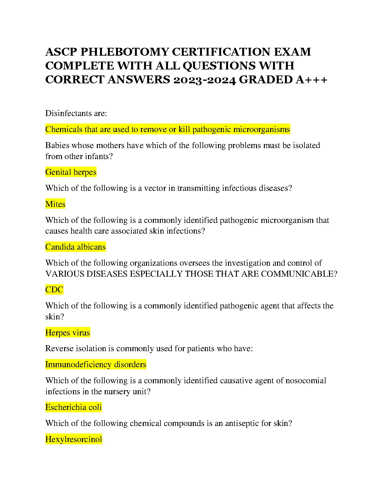 ASCP PHLEBOTOMY CERTIFICATION EXAM COMPLETE WITH ALL QUESTIONS WITH CORRECT ANSWERS 2023/2024 GRADED A+. DOWNLOAD on www.hackedexams.com INSTANTLY.