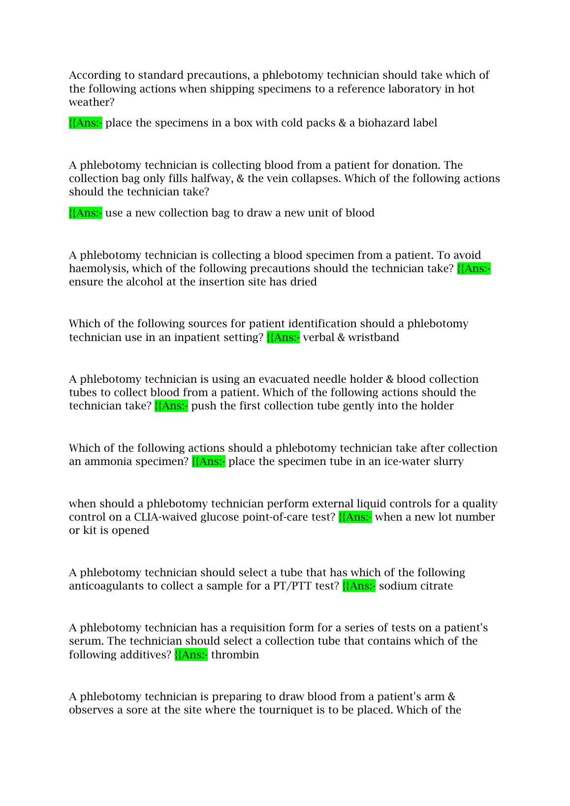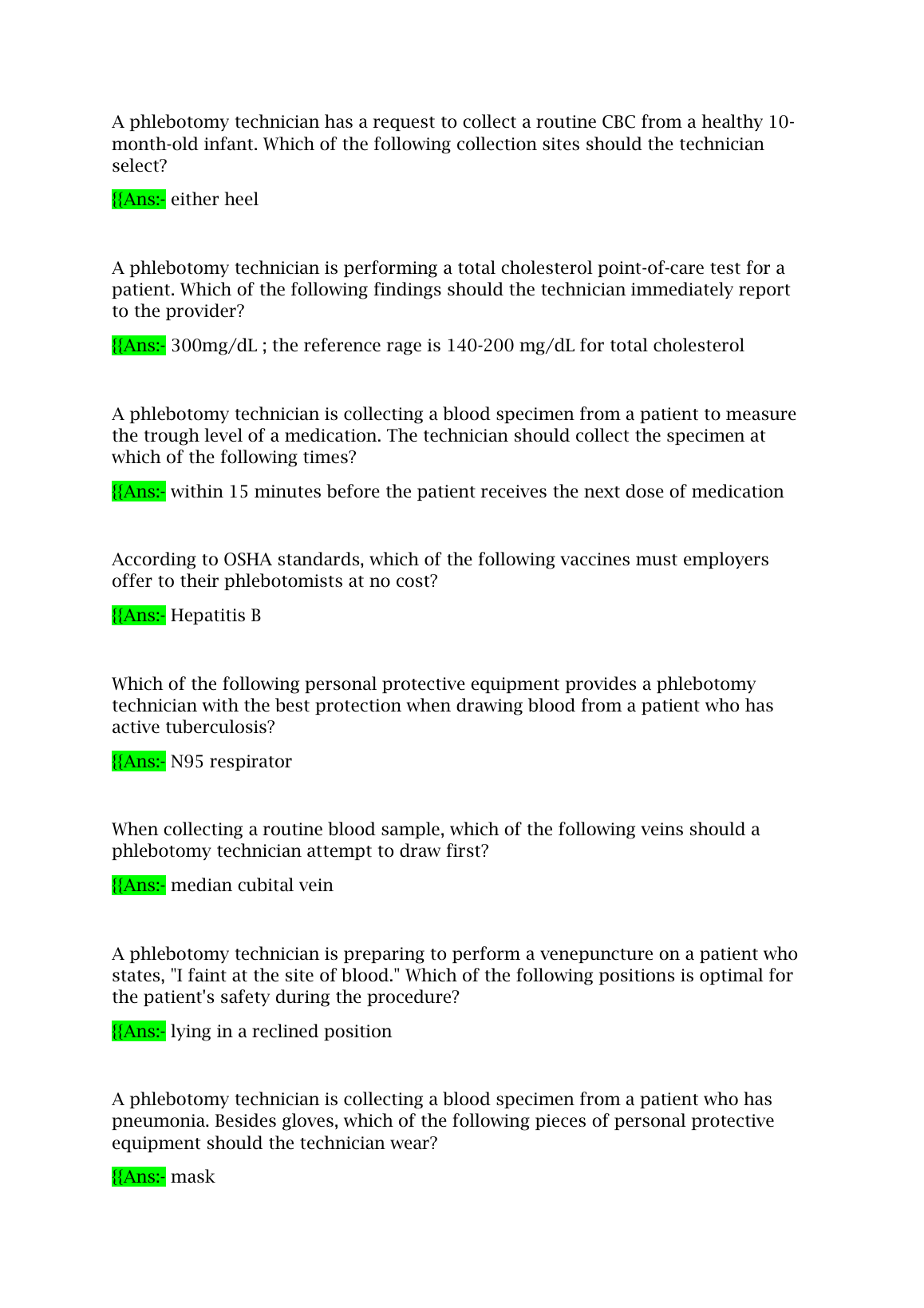 NHA Phlebotomy Exam 2/Phlebotomy NHA Exam 2 Questions Solved 100% Correct 2023 |Verified. DOWNLOAD on www.hackedexams.com INSTANTLY.