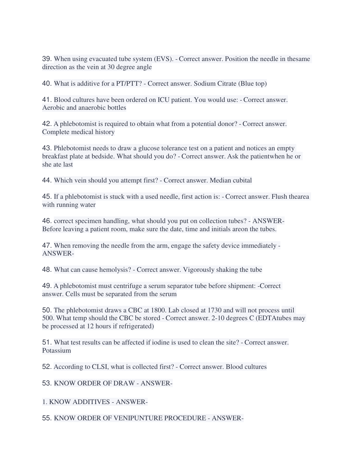 NHA PHLEBOTOMY CERIFICATION EXAM VERIFIED QUESTIONS AND ANSWERS GRADED A+ LATEST 2023/2024. DOWNLOAD on www.hackedexams.com INSTANTLY.
