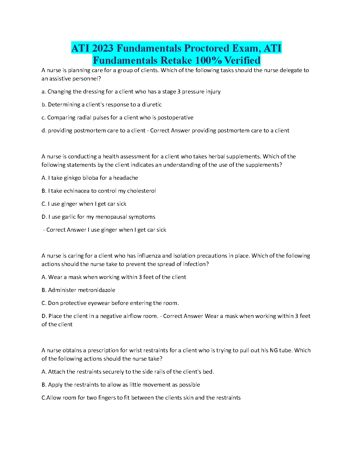 ATI 2023 Fundamentals Proctored Exam, ATI Fundamentals Retake 100% Verified. DOWNLOAD on www.hackedexams.com INSTANTLY.