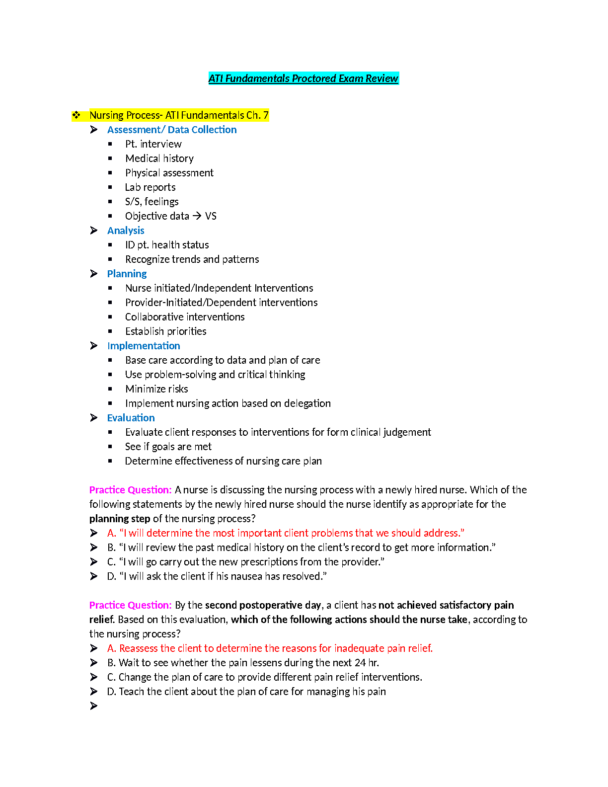 ATI Fundamentals Proctored Exam Review BRAND NEW