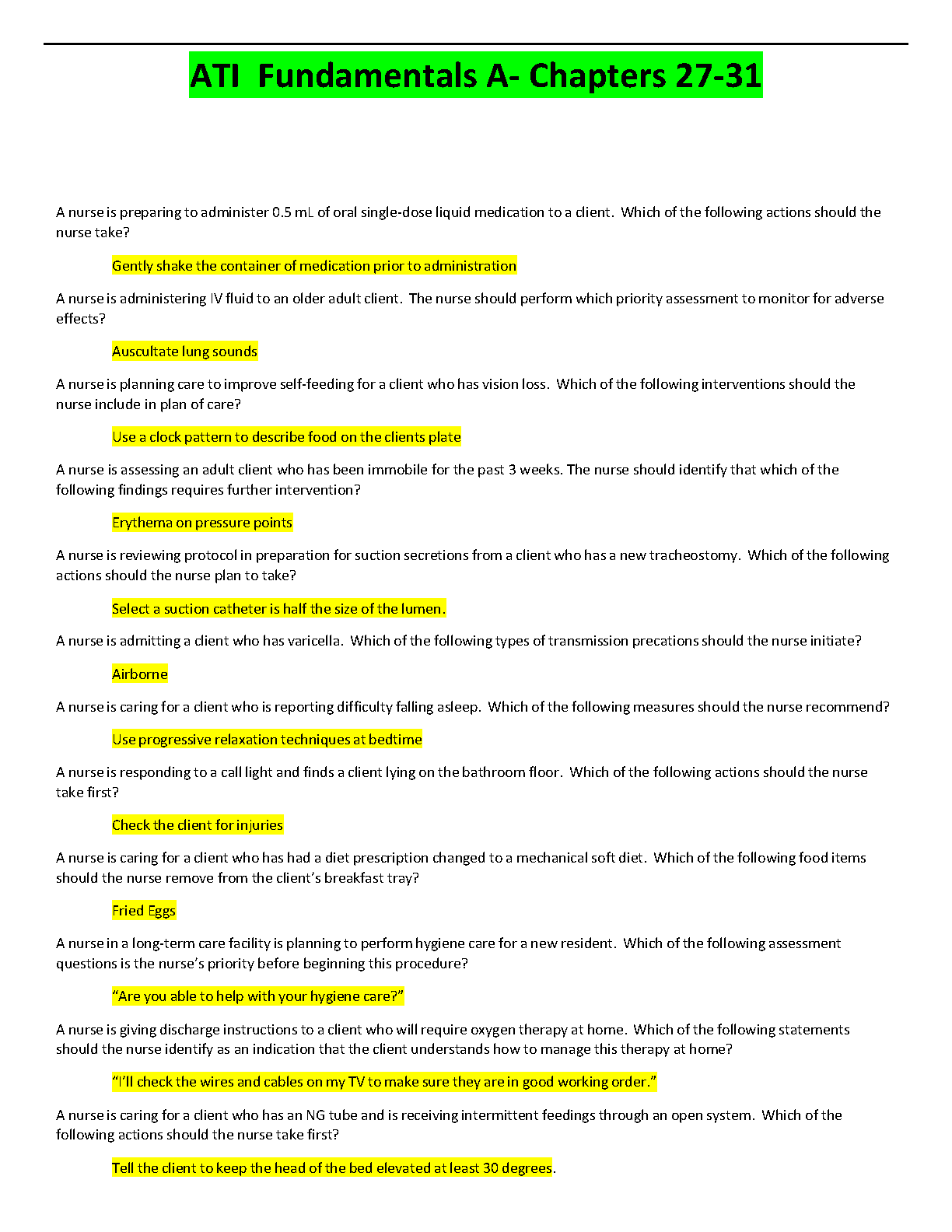 ATI Fundamentals A- Chapters 27-31 COMPLETE AND UPDATED SOLUTION. DOWNLOAD on www.hackedexams.com INSTANTLY.
