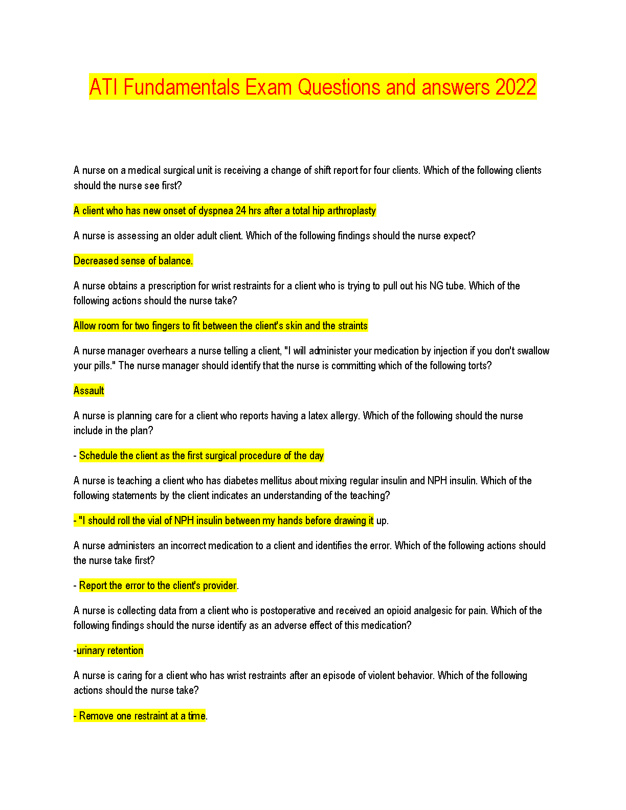 ATI Fundamentals Exam Questions and answers 100% VERIFIED AND CORRECT