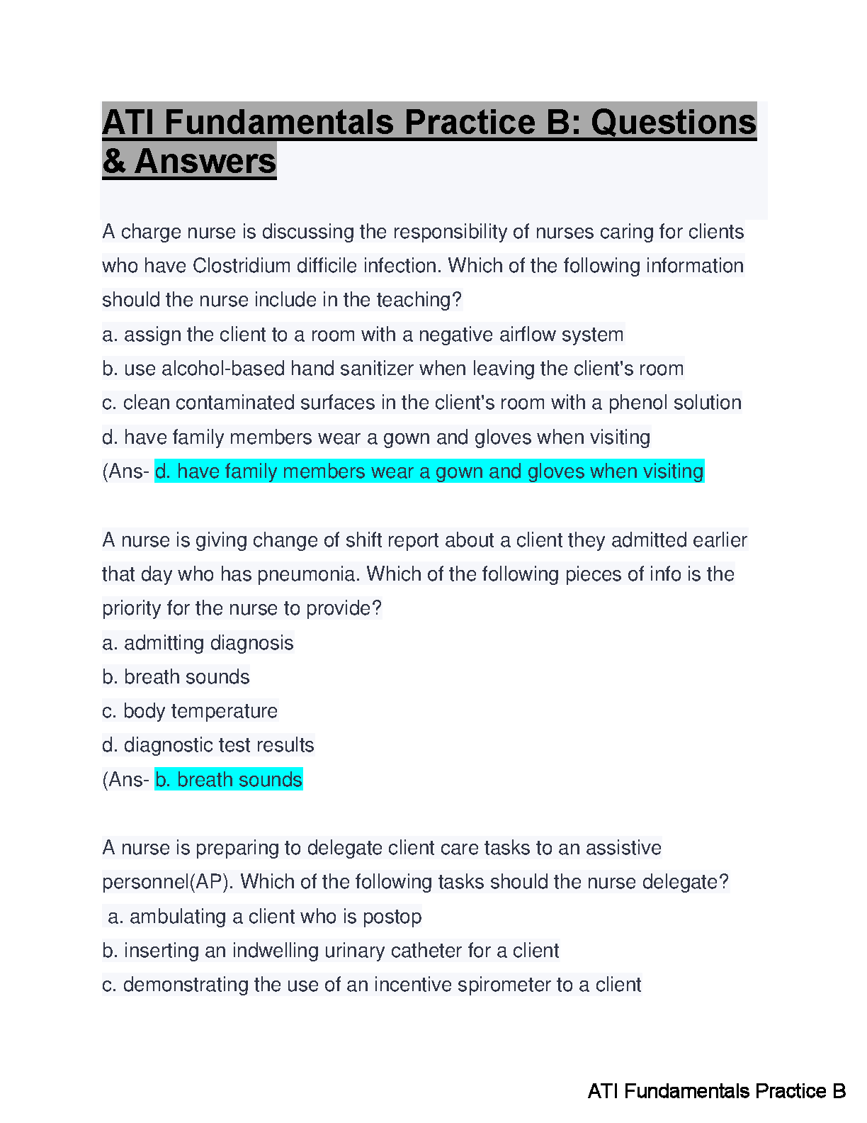 ATI Fundamentals Practice B: Questions & Answers RATED A+