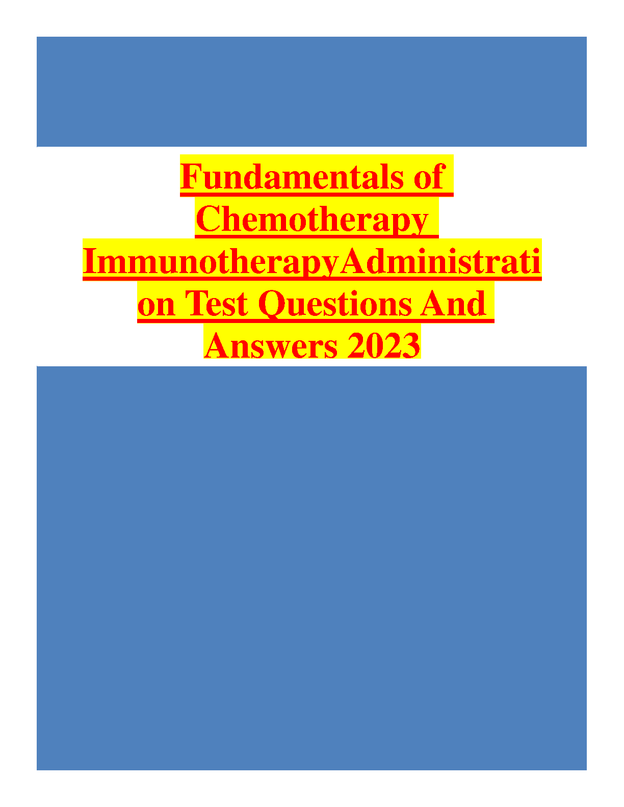 Fundamentals of Chemotherapy Immunotherapy Administration Test Questions And Answers 2023. DOWNLOAD on www.hackedexams.com INSTANTLY.