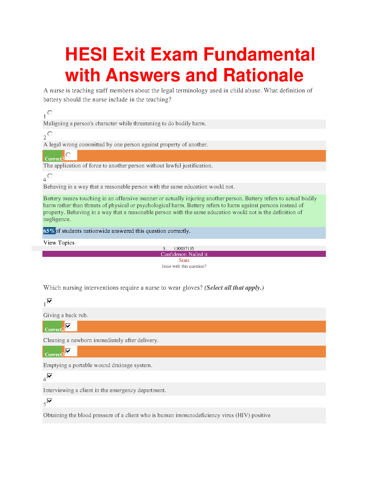 HESI Exit Exam Fundamental with Answers and Rationale 2023
