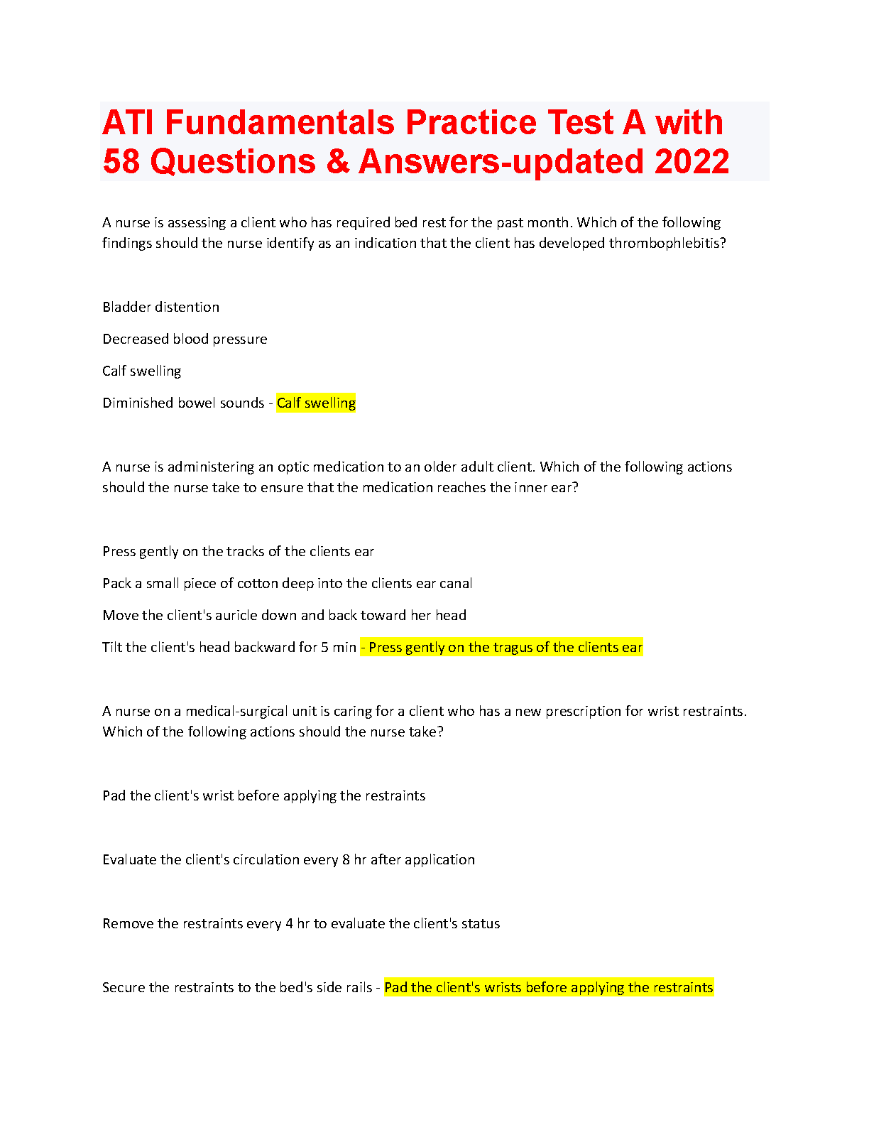 ATI Fundamentals Practice Test A with 58 Questions & Answers-updated FOR 2023/2024. DOWNLOAD on www.hackedexams.com INSTANTLY.
