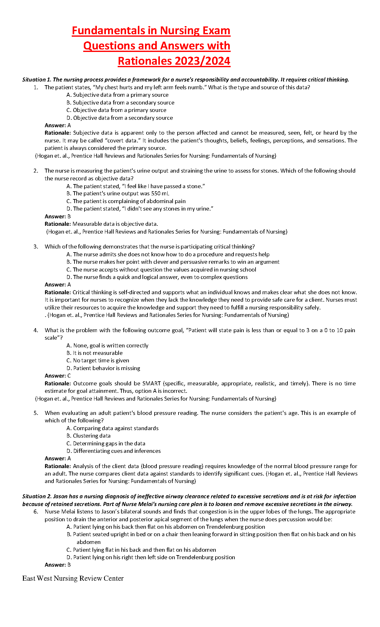 Fundamentals in Nursing Exam Questions and Answers with Rationales 2023/2024
