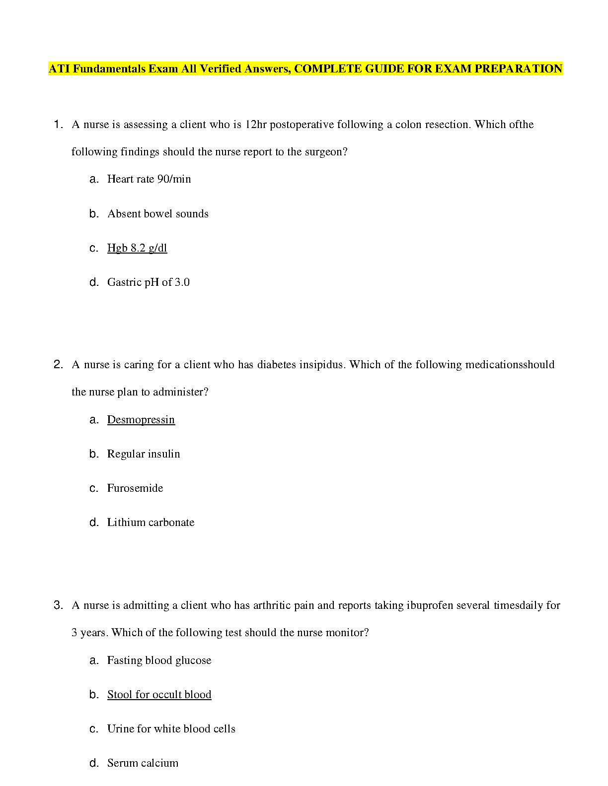 ATI Fundamentals Exam All Verified Answers, COMPLETE GUIDE FOR EXAM PREPARATION. DOWNLOAD on www.hackedexams.com INSTANTLY.