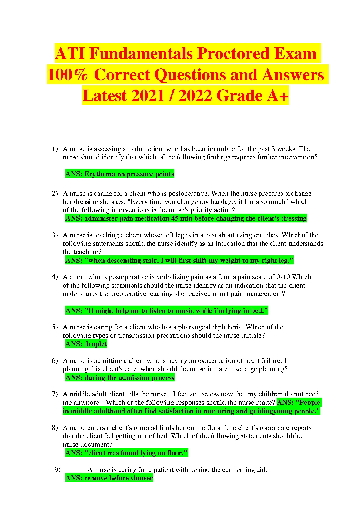 ATI Fundamentals Proctored Exam 100% Correct Questions and Answers Latest UPDATE Grade A+