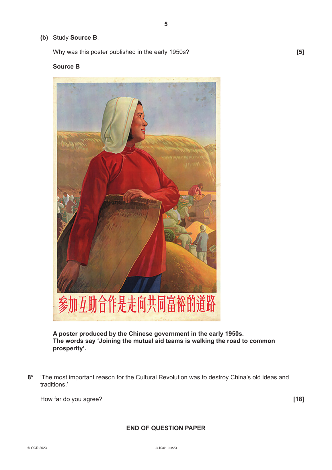 2023 OCR GCSE HISTORY A PAPER 1 QUESTION PAPER (J410/01: China 1950-1981: The people and the state).