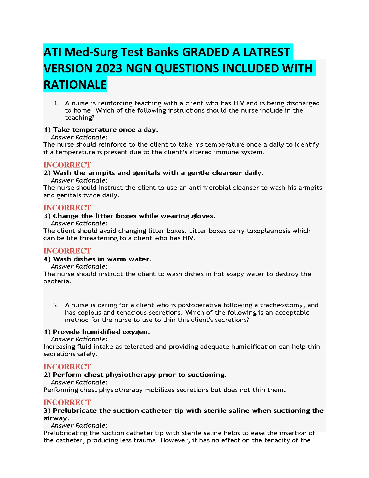 ATI Med-Surg Test Banks GRADED A+ LATEST VERSION 2023/2024 NGN QUESTIONS INCLUDED WITH RATIONALE