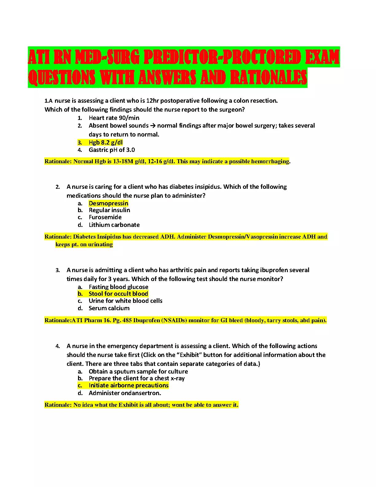 ATI RN MED-SURG PREDICTOR PROCTORED EXAM QUESTIONS WITH ANSWERS AND RATIONALES BRAND NEW SOLUTION FOR 2024