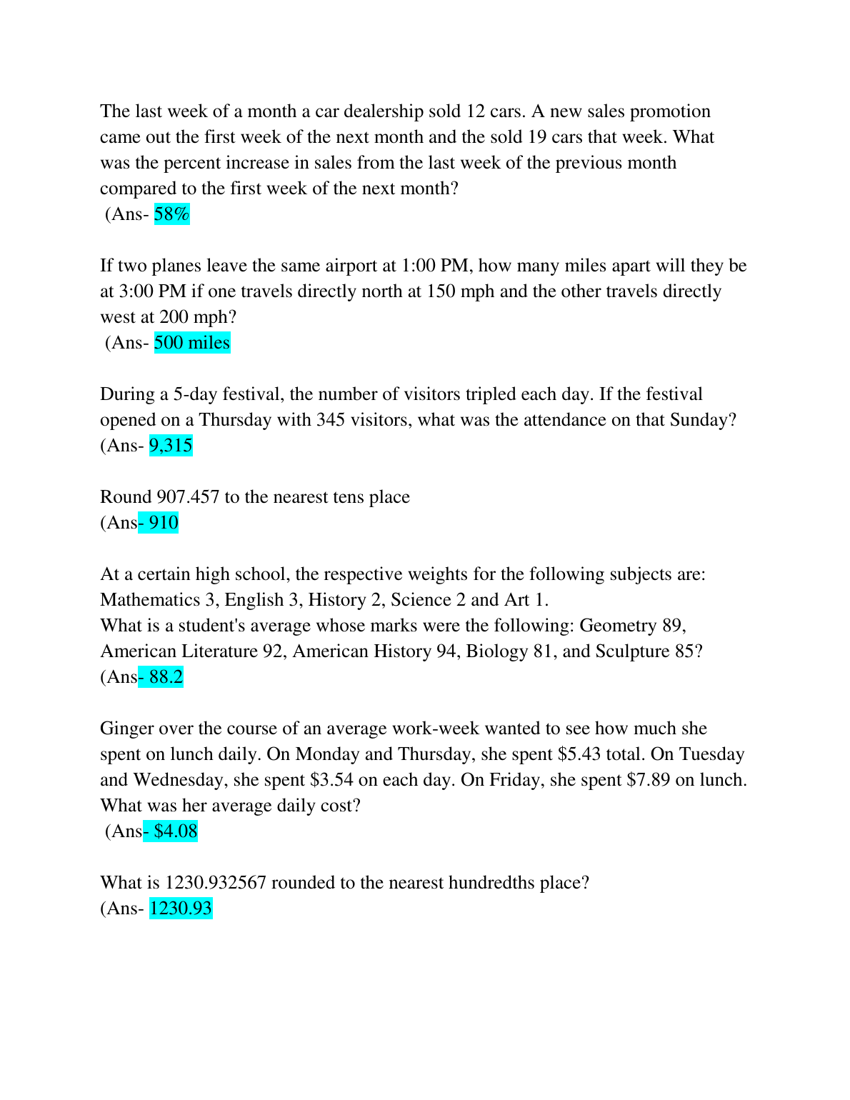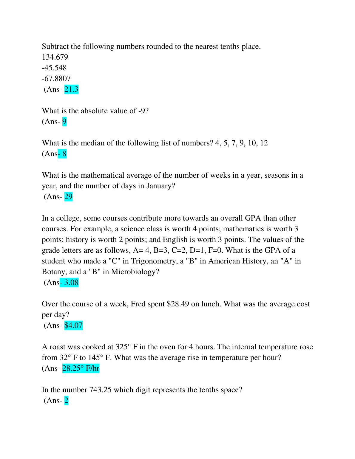 ATI TEAS 7 Math Practice Questions and Answers GRADED A+