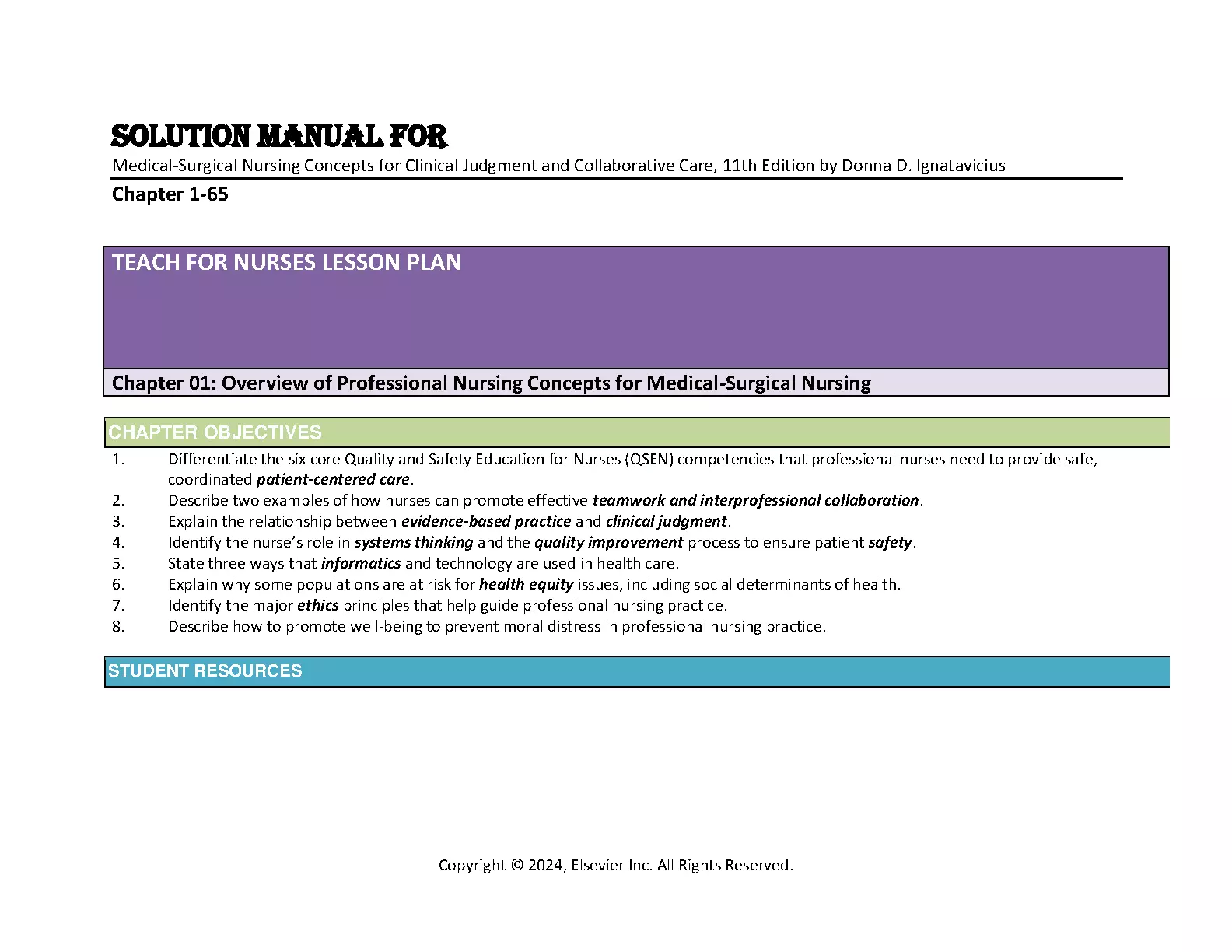 Solution Manual For Medical-Surgical Nursing Concepts for Clinical Judgment and Collaborative Care, 11th Edition by Donna D. Ignatavicius