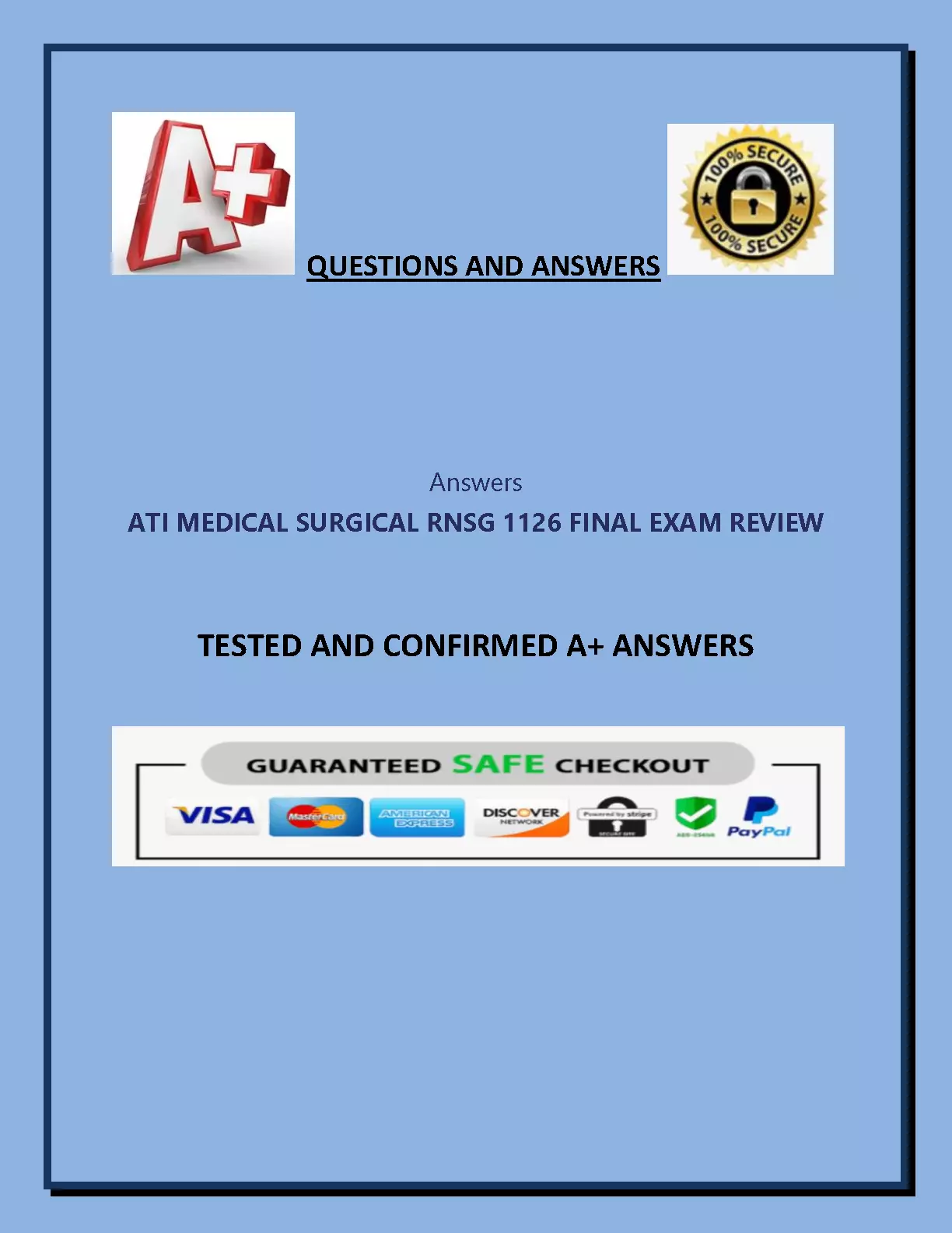 ATI MEDICAL SURGICAL RNSG 1126 FINAL EXAM REVIEW TESTED AND CONFIRMED A+ ANSWERS 2024. DOWNLOAD on www.hackedexams.com INSTANTLY.