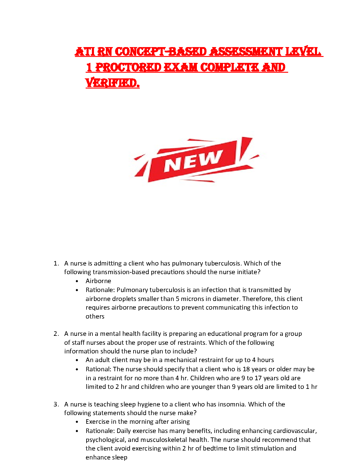 ATI RN Concept-Based Assessment Level 1 Proctored Exam Complete and Verified New Update 2024