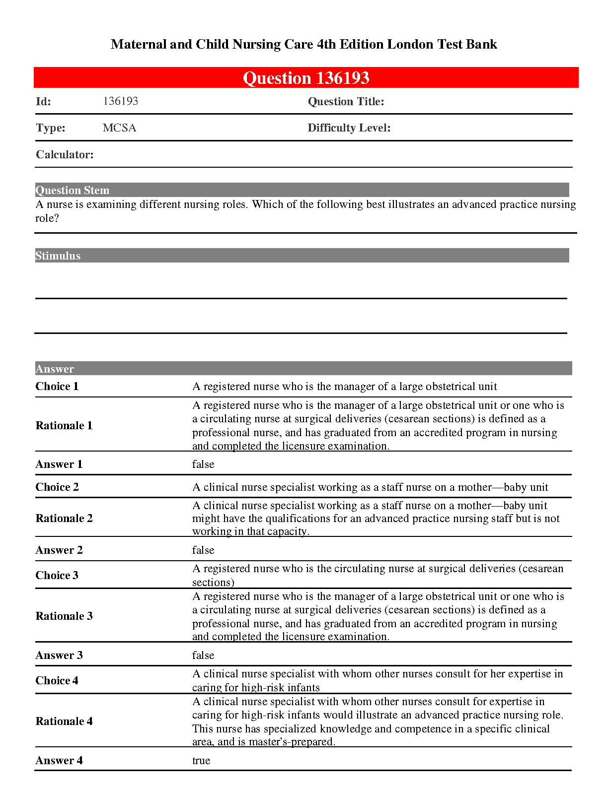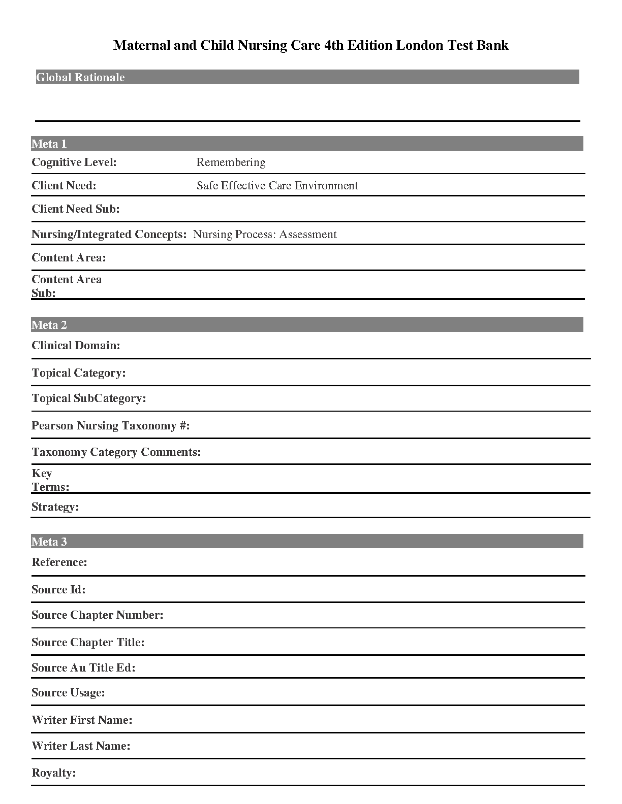 Maternal and Child Nursing Care 4th Edition London Test Bank