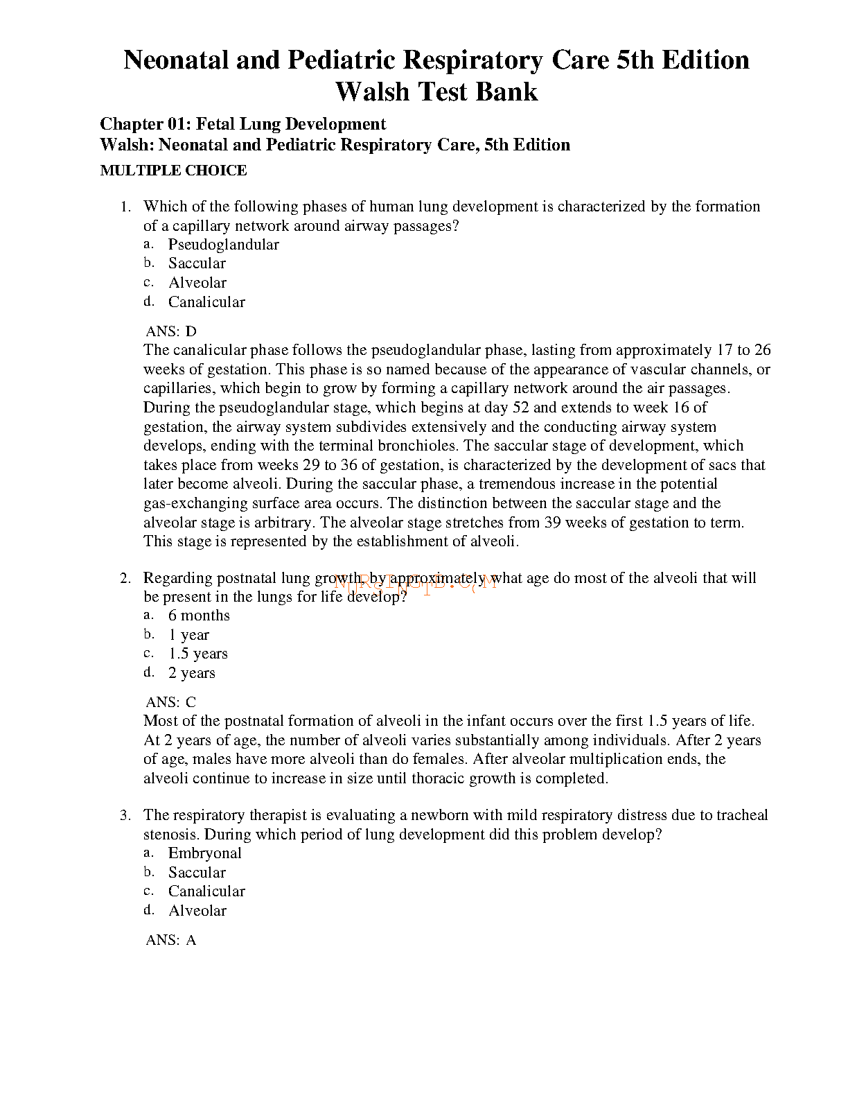 Walsh: Neonatal and Pediatric Respiratory Care, 5th Edition. DOWNLOAD on www.hackedexams.com INSTANTLY.