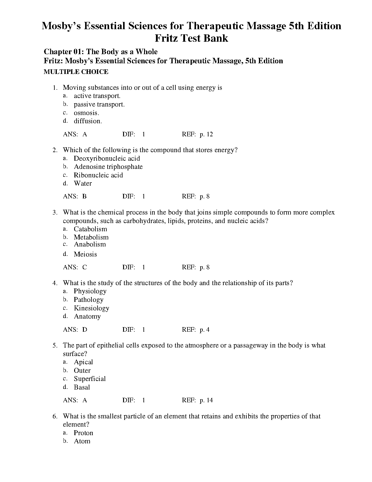 Fritz: Mosby's Essential Sciences for Therapeutic Massage, 5th Edition TEST BANK