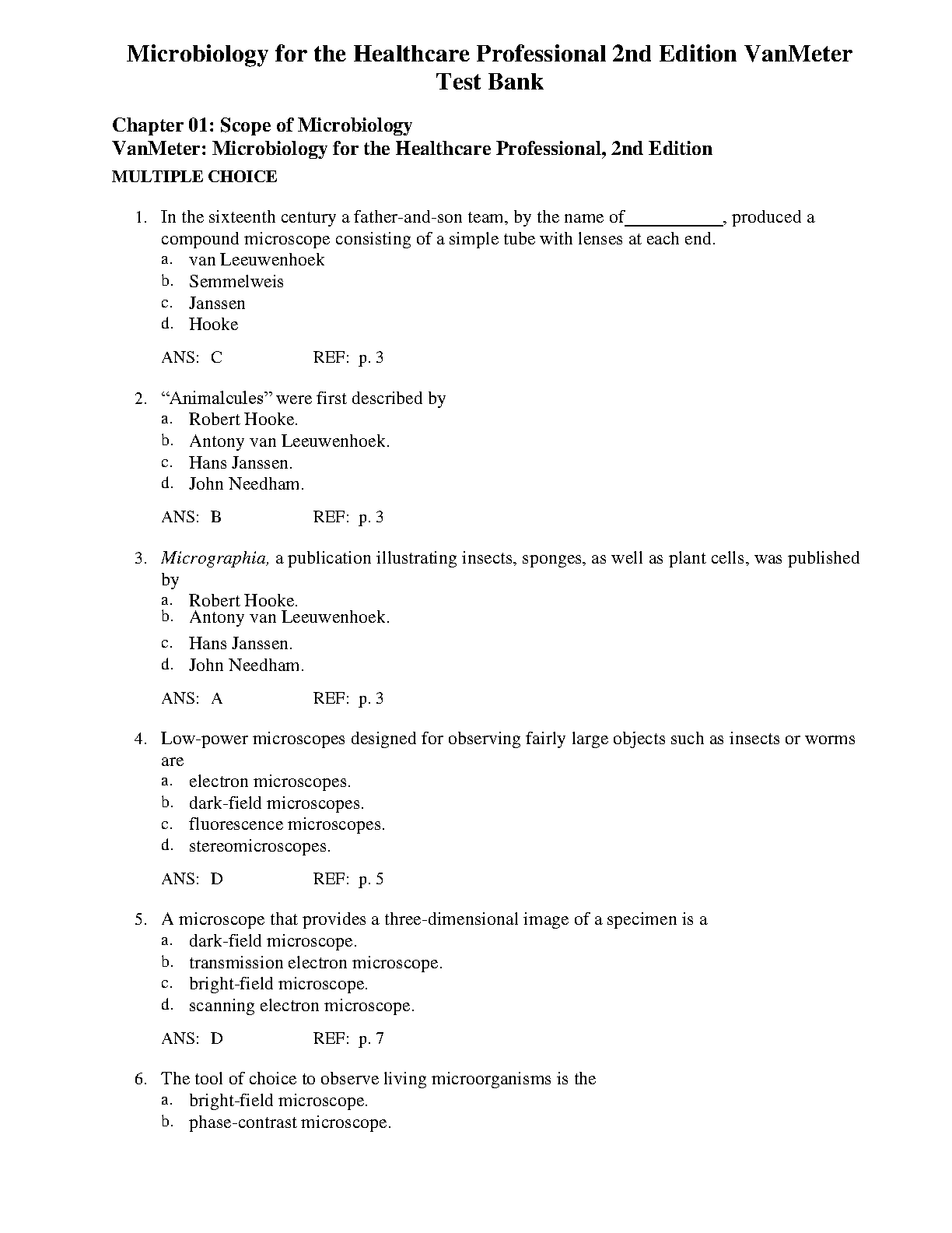 Test Bank for VanMeter: Microbiology for the Healthcare Professional, 2nd Edition