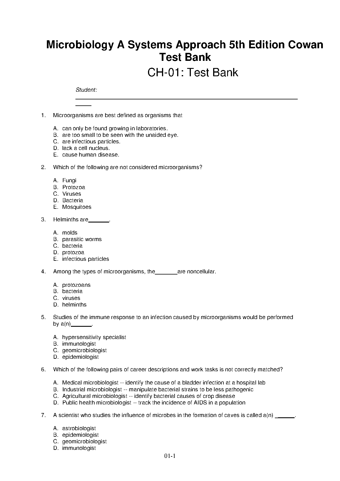 TEST BANK FOR MICROBIOLOGY A SYSTEMS APPROACH 5TH EDITION BY COWAN