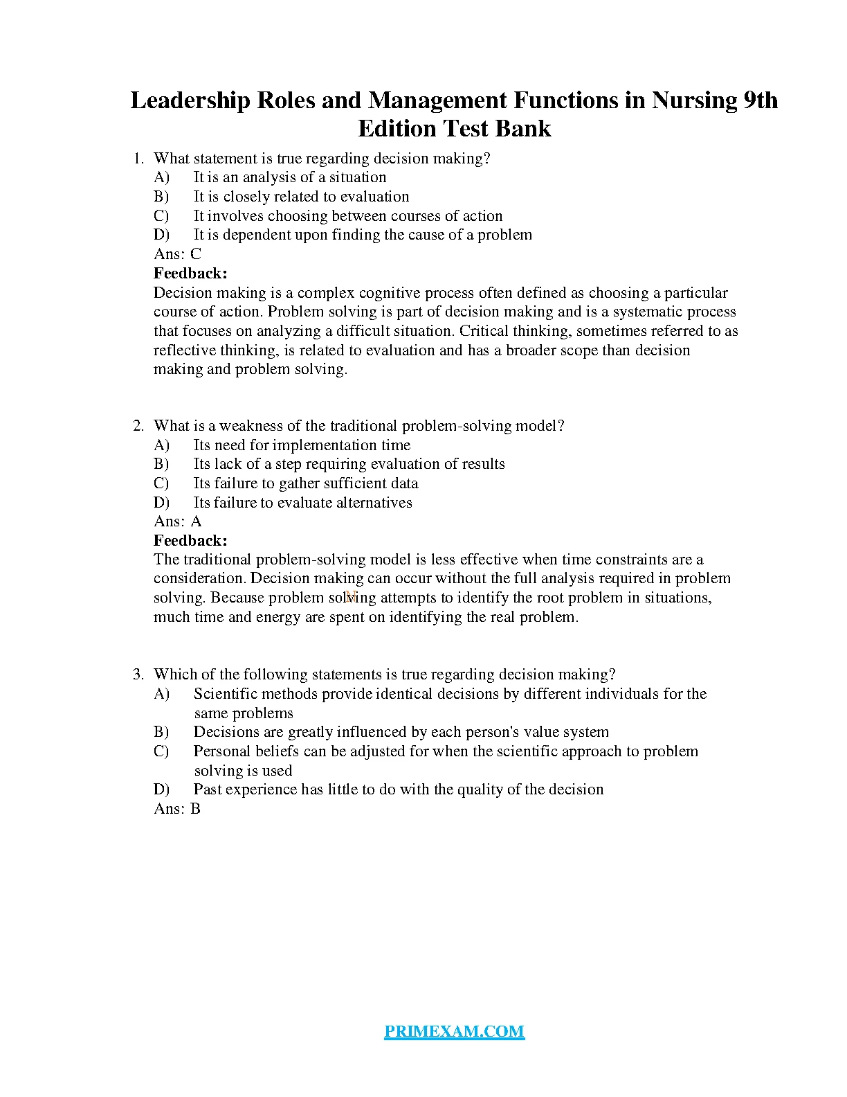 TEST BANK FOR LEADERSHIP ROLES AND MANAGEMENT FUNCTIONS IN NURSING 9TH EDITION. DOWNLOAD on www.hackedexams.com INSTANTLY.