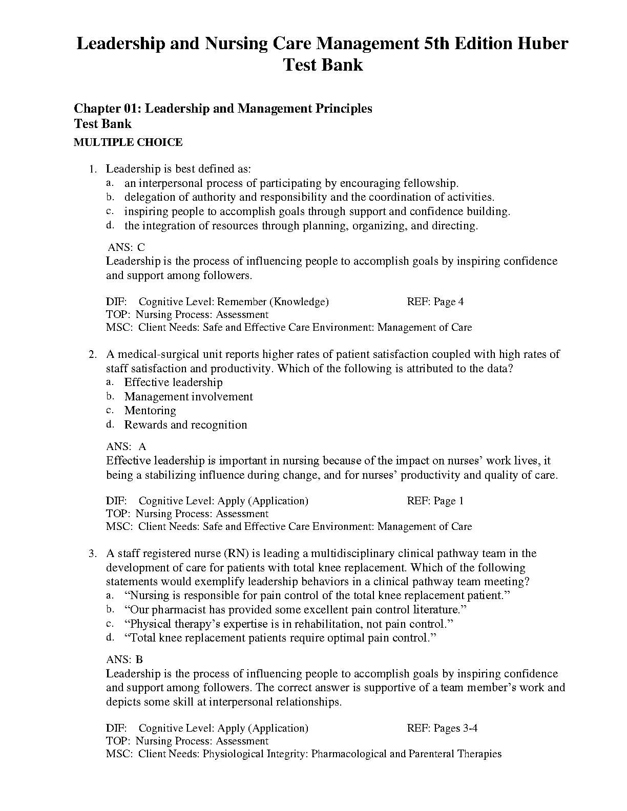 Test Bank for Leadership and Nursing Care Management 5th Edition. DOWNLOAD on www.hackedexams.com INSTANTLY.