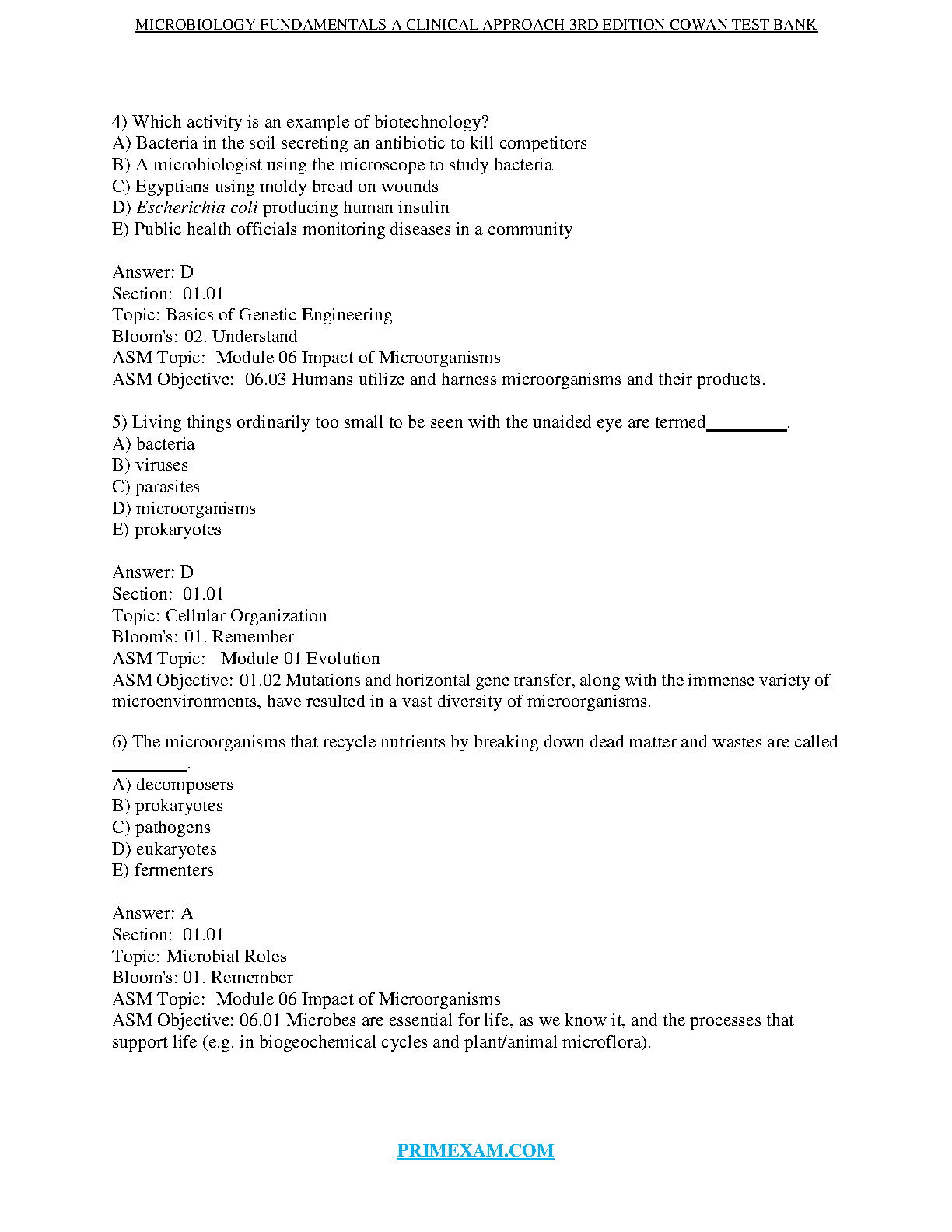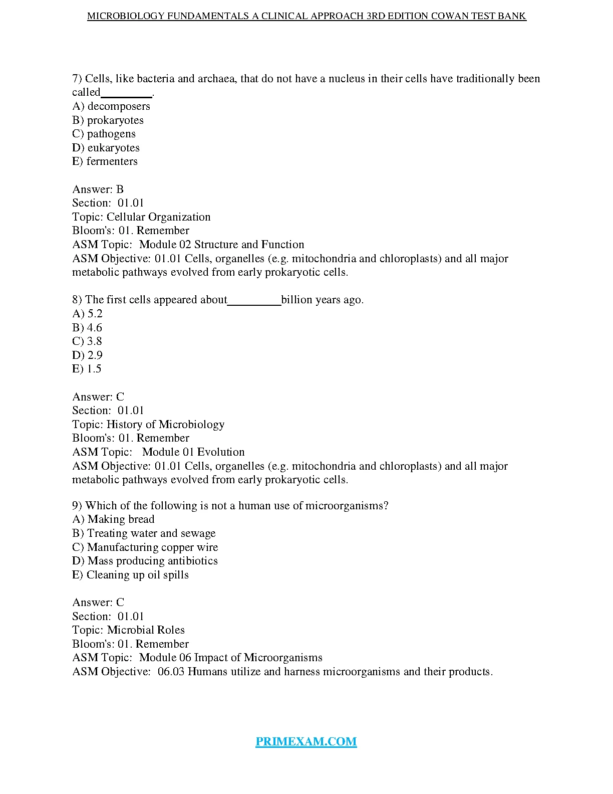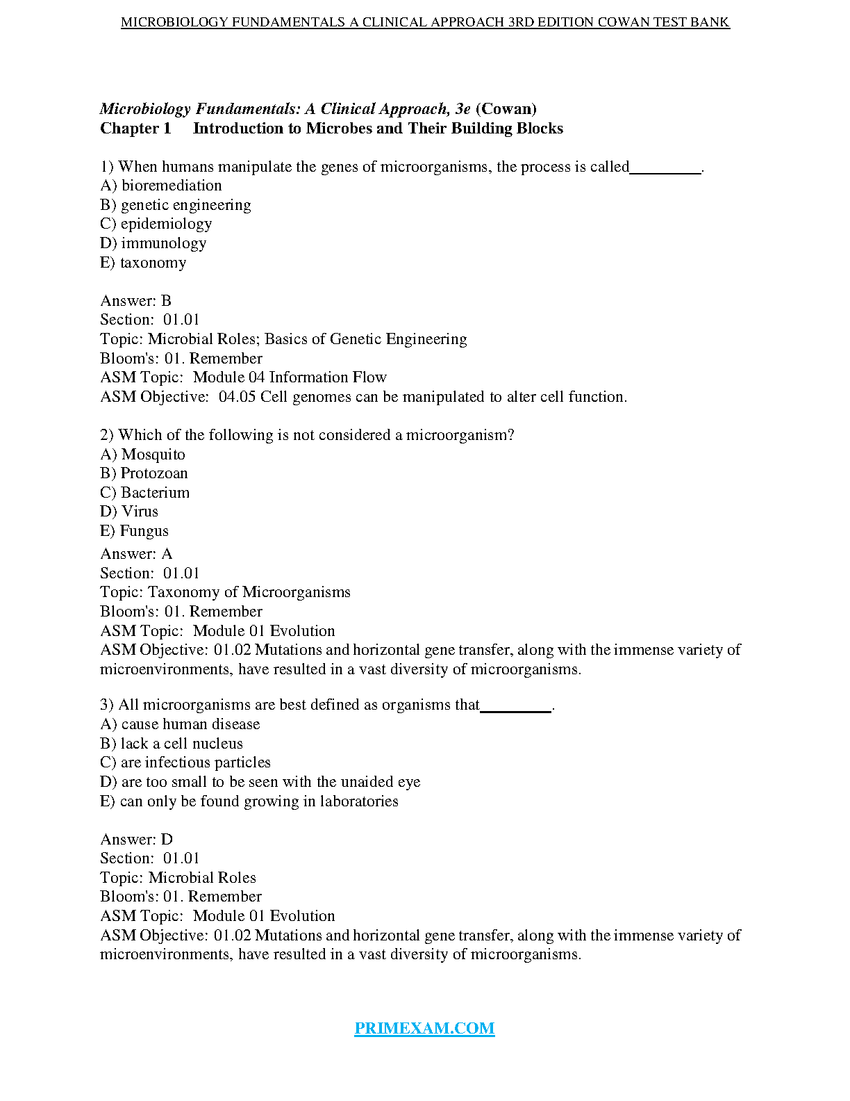 Test bank for Microbiology Fundamentals: A Clinical Approach, 3rd Edition by Cowan
