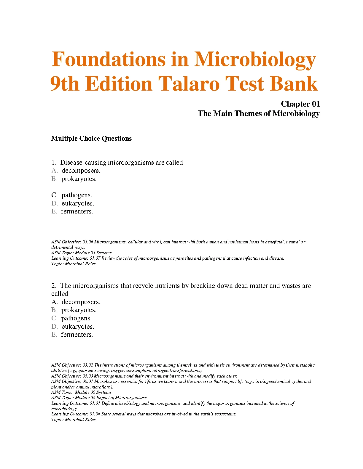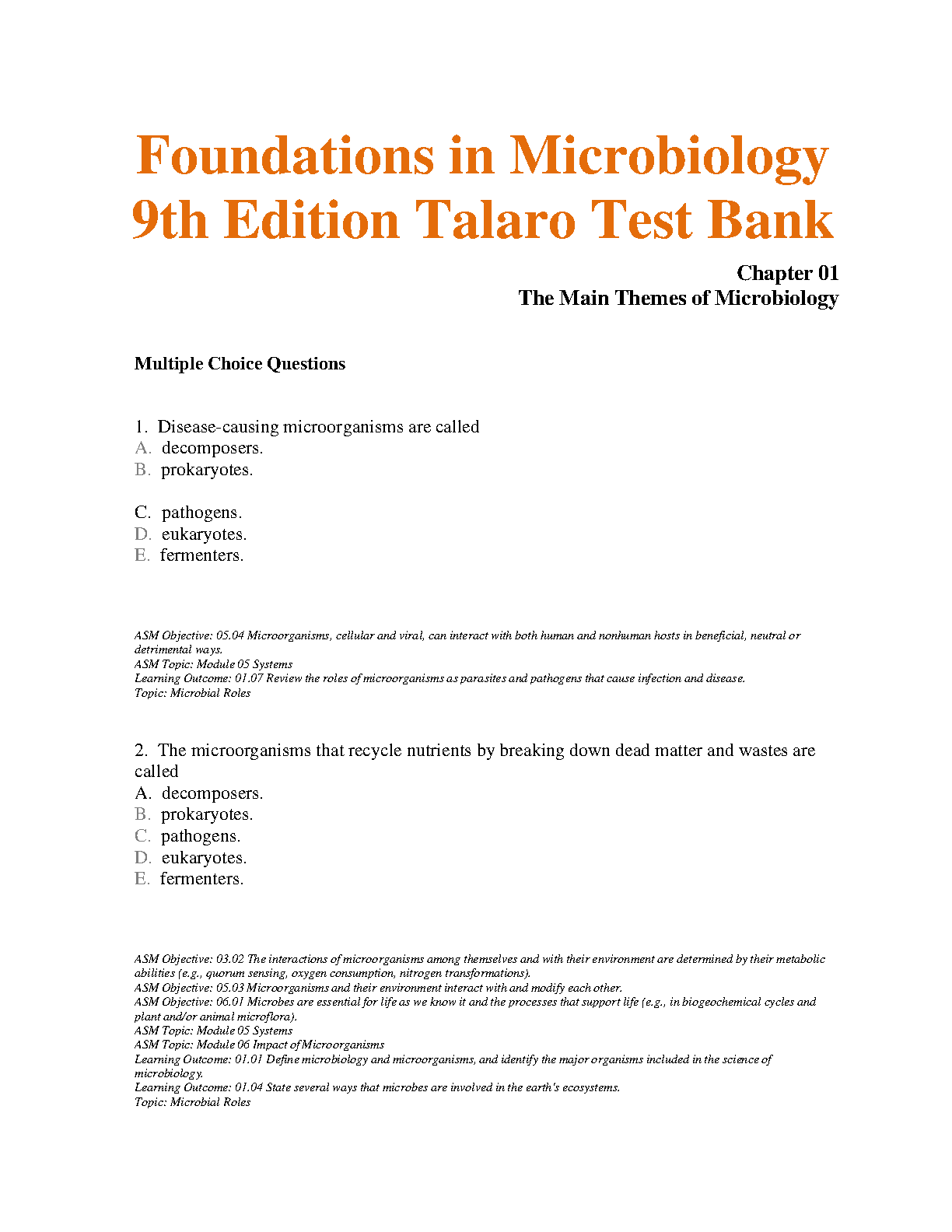 Test Bank for Foundations in Microbiology 9th Edition by Talaro