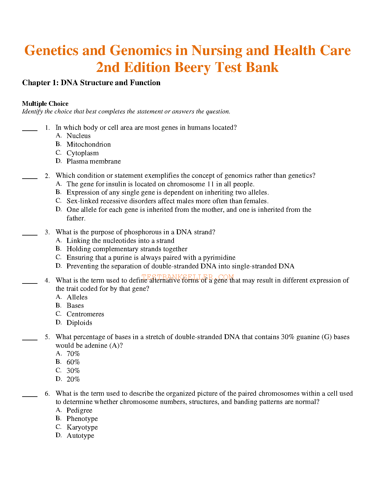Genetics and Genomics in Nursing and Health Care 2nd Edition Beery Test Bank