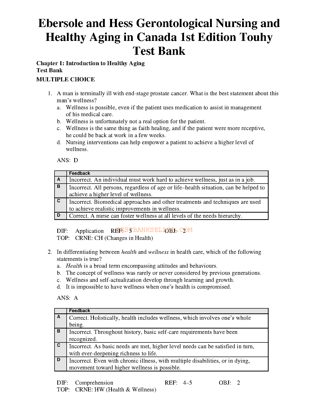 Ebersole and Hess Gerontological Nursing and Healthy Aging in Canada 1st Edition Touhy Test Bank. DOWNLOAD on www.hackedexams.com INSTANTLY.