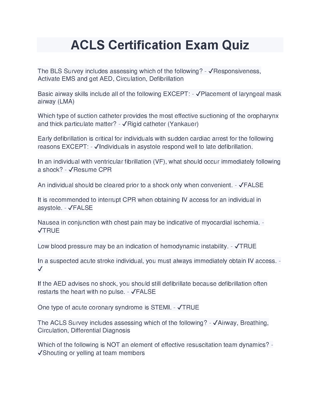 ACLS Certification Exam Quiz: Pass Your Exam on the First Attempt!