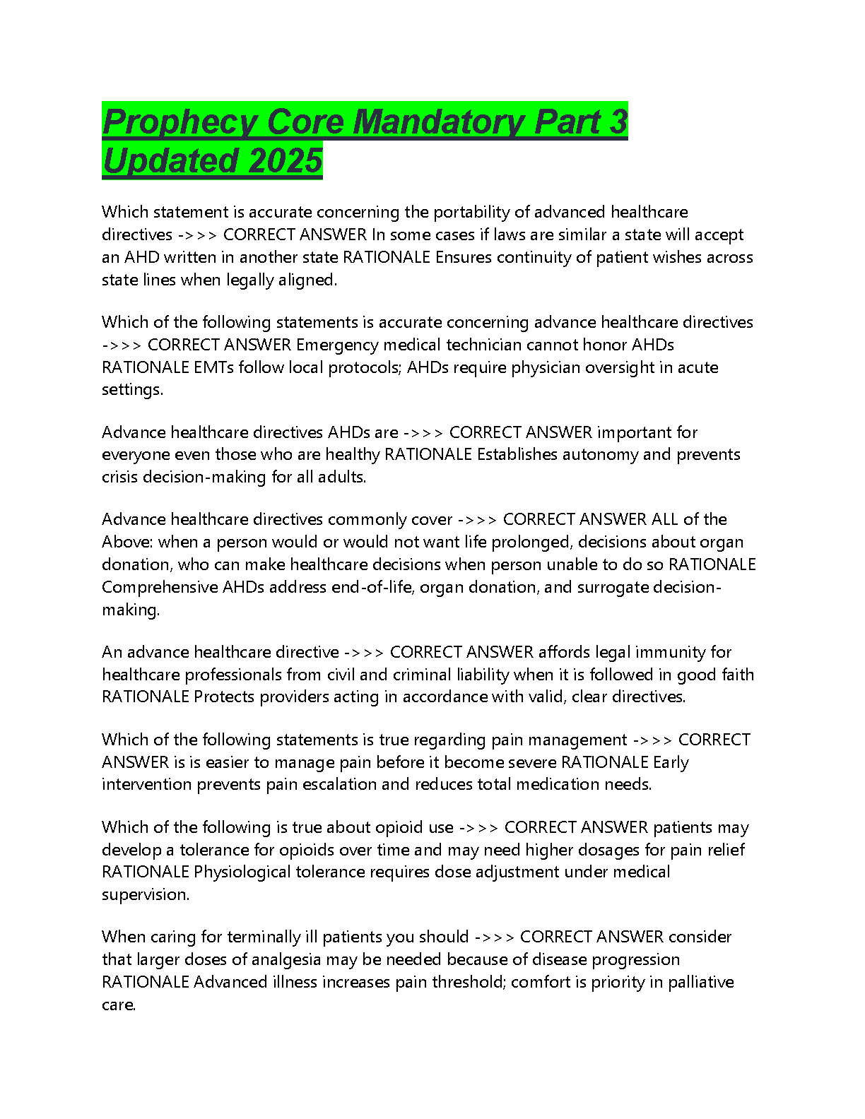 Prophecy RN Pharmacology A (2) complete with complete solution PACK 2023/2024