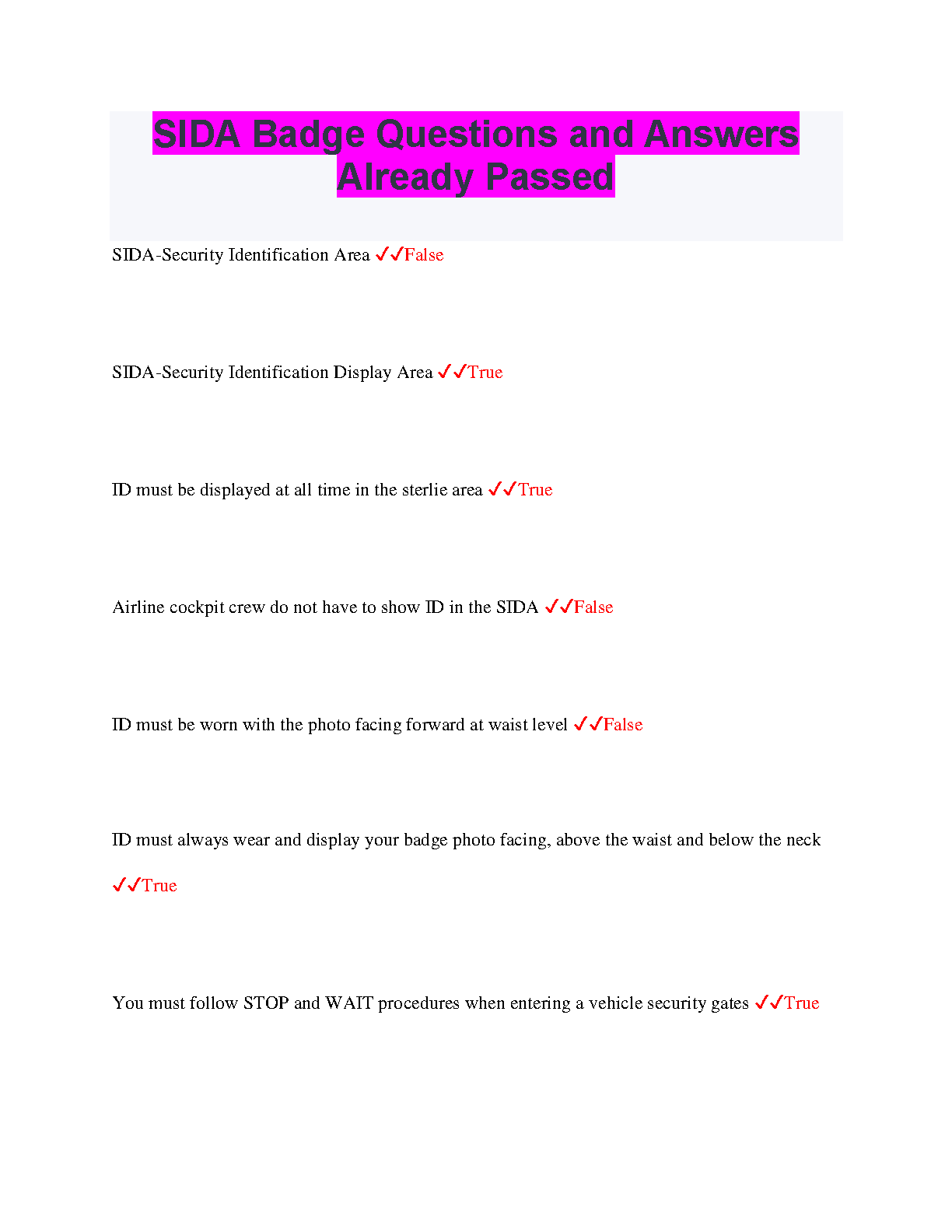 Practice your knowledge of SIDA badge requirements with these comprehensive questions and answers. Perfect for security professionals seeking to pass their certification exams.
