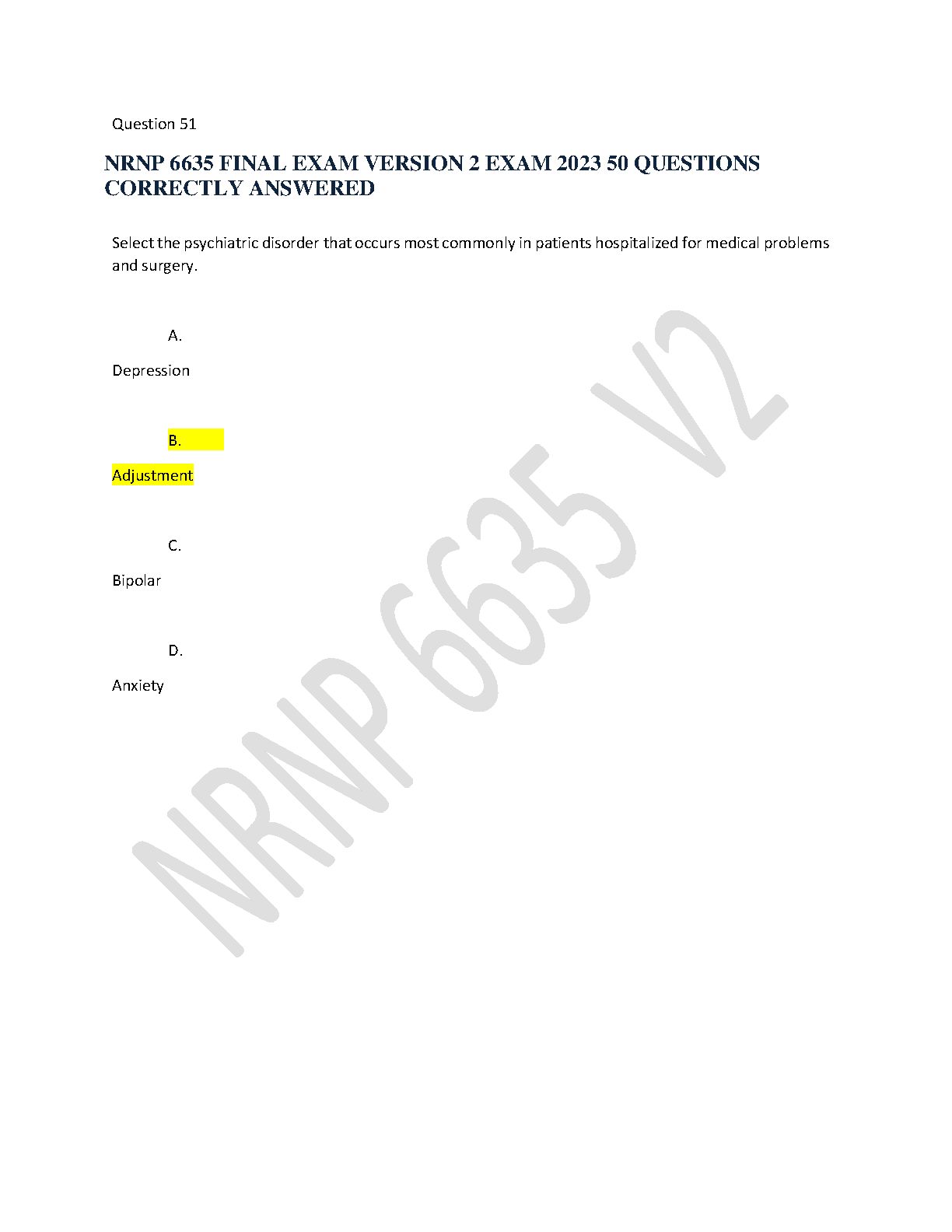 NRNP 6635 Final Exam Version 2 2023 50 Questions by - [Author's Name] - Ace Your Exam on the First Attempt - Edition 2 - 2023-2024