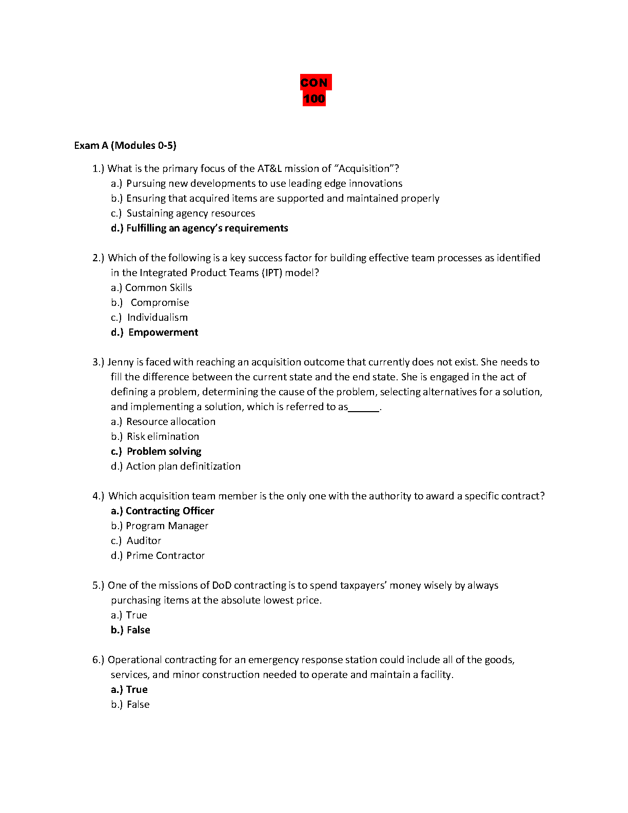 Ace your Acquisition Management exam on the first attempt with this comprehensive set of practice questions and answers. Covering key concepts like fulfilling an agency's requirements, contracting processes, and problem-solving, this resource is designed to help you master the course material and confidently face your exam.