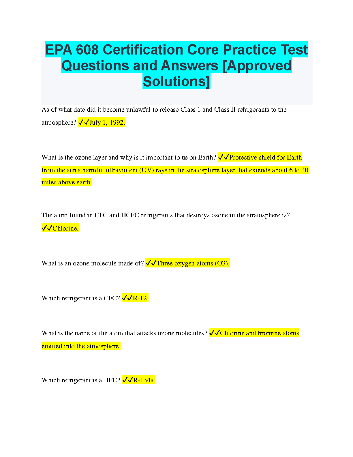 EPA 608 Certification Core Practice Test Questions and Answers [Approved Solutions]