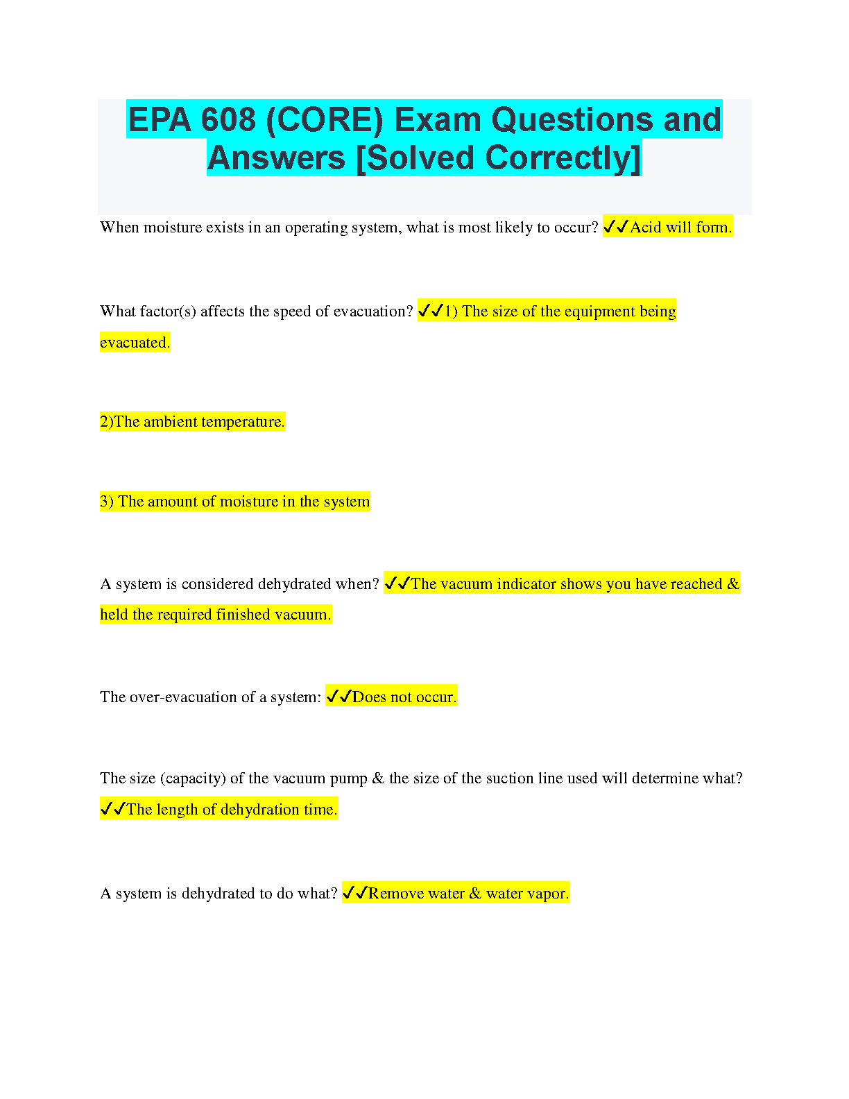 This comprehensive EPA 608 (CORE) exam study guide includes practice questions and answers, all solved correctly. Master the material and pass your EPA 608 exam on the first attempt.