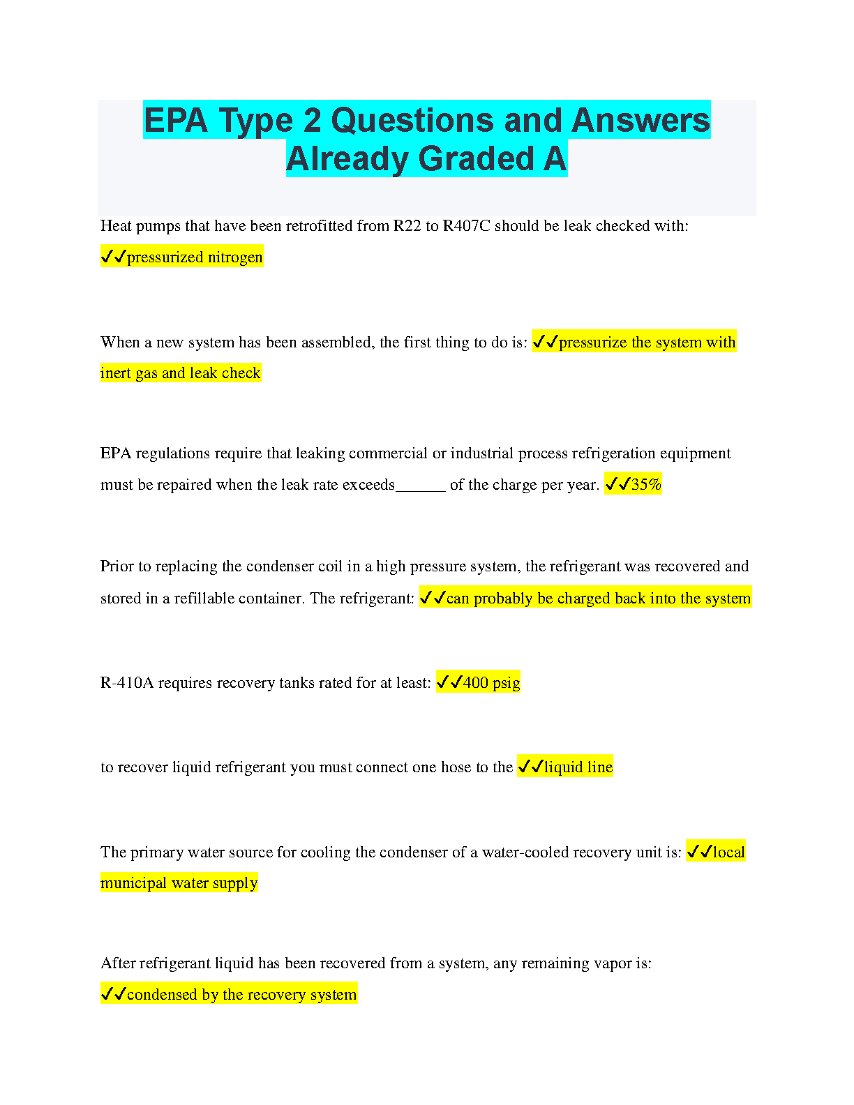 EPA Type 2 Questions and Answers Already Graded A Edition - HVACR Professionals