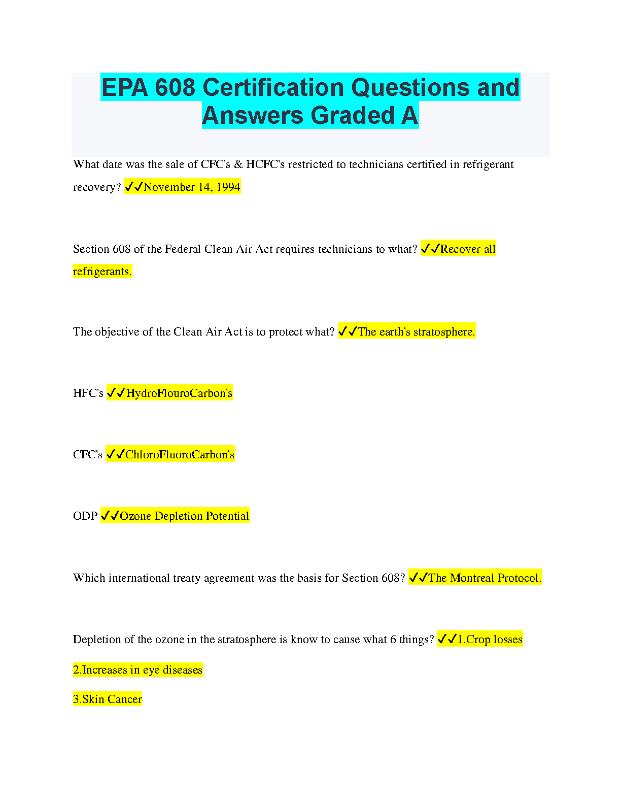EPA 608 Certification Questions and Answers Graded A - Pass Your Exam on the First Attempt