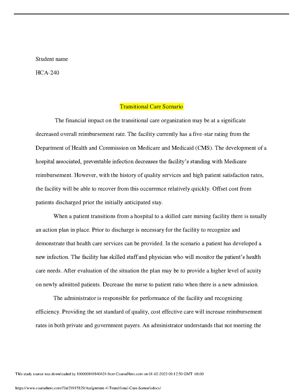 Transitional Care Scenario: A Case Study in Healthcare Management