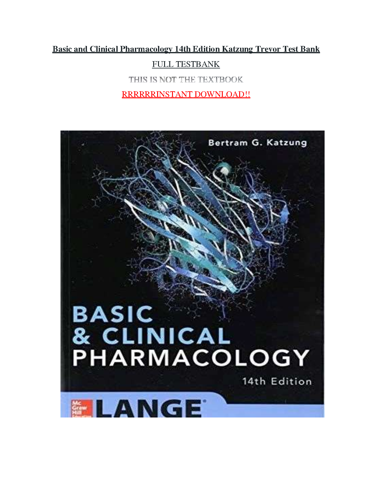 Get access to the full test bank for the 14th edition of Basic and Clinical Pharmacology by Bertram G. Katzung and Susan B. Masters. This comprehensive resource is designed to help students master the core concepts of pharmacology and achieve success on their exams.