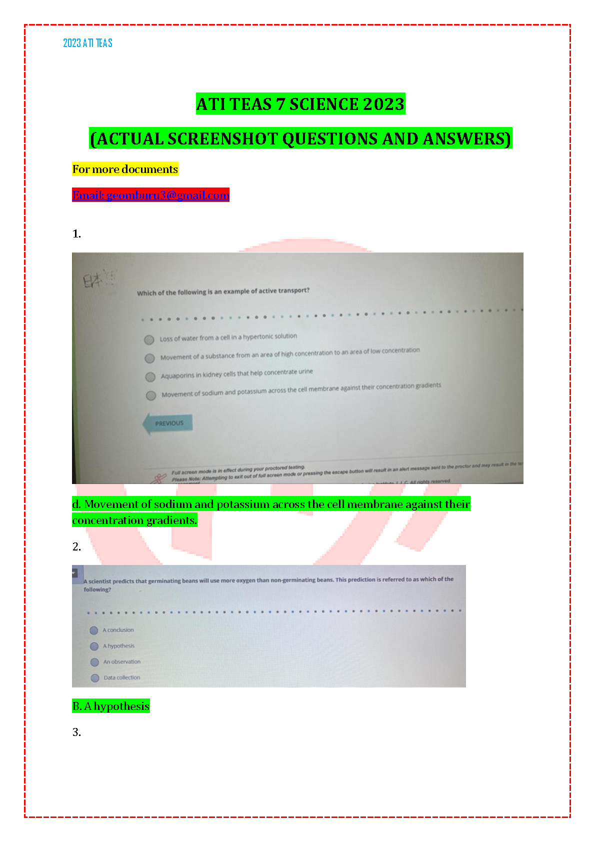 ATI TEAS 7 Science 2023: Actual Screenshot Questions and Answers by ATI Testing