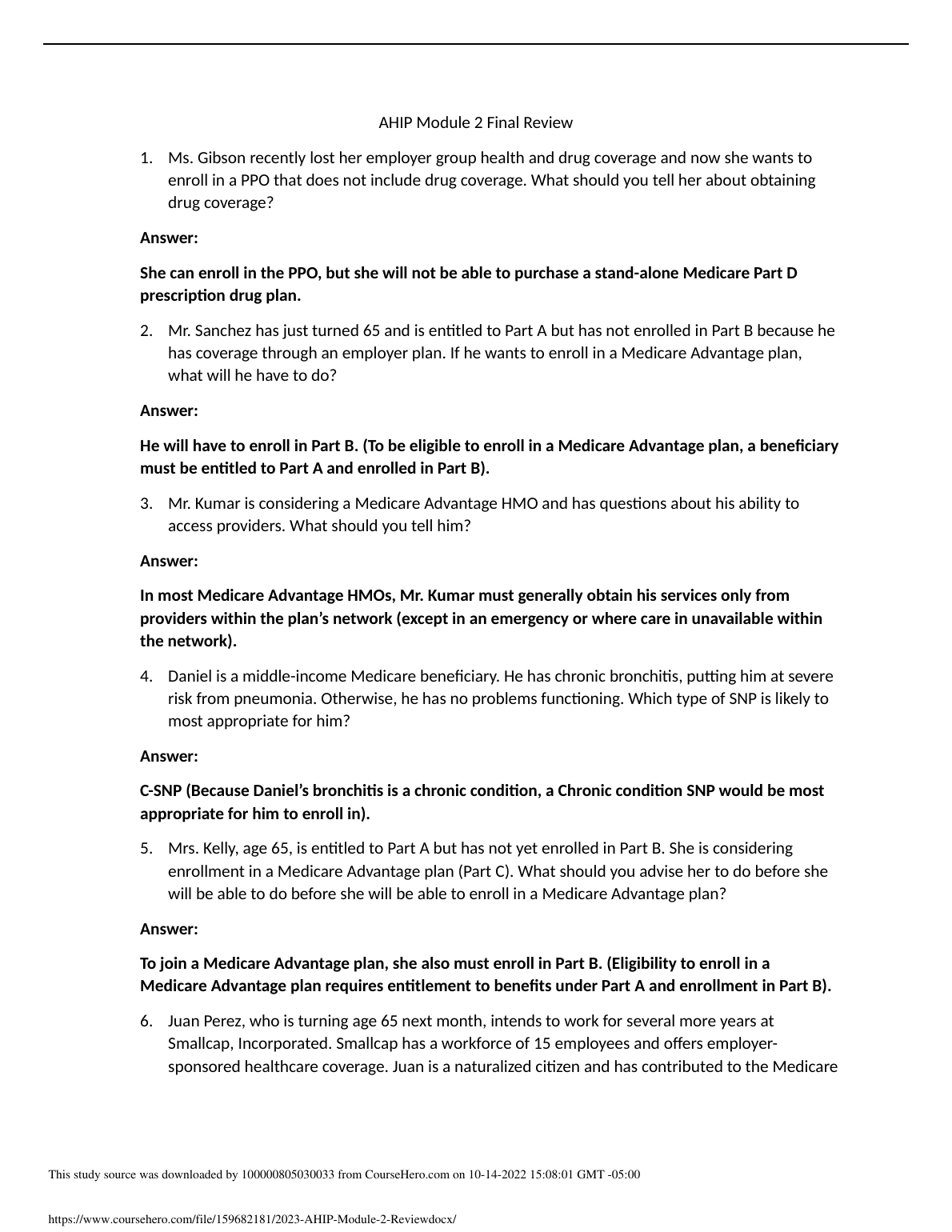 AHIP MODULE 2 REVIEW QUSTIONS AND ANSWERS GRADED A+