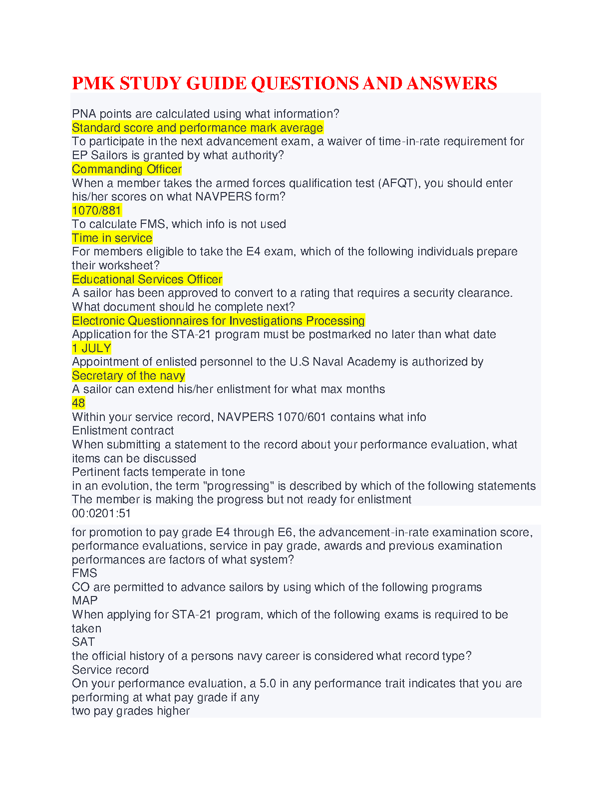 PMK Study Guide Questions and Answers - Latest Edition - Passing Exams on Your First Attempt