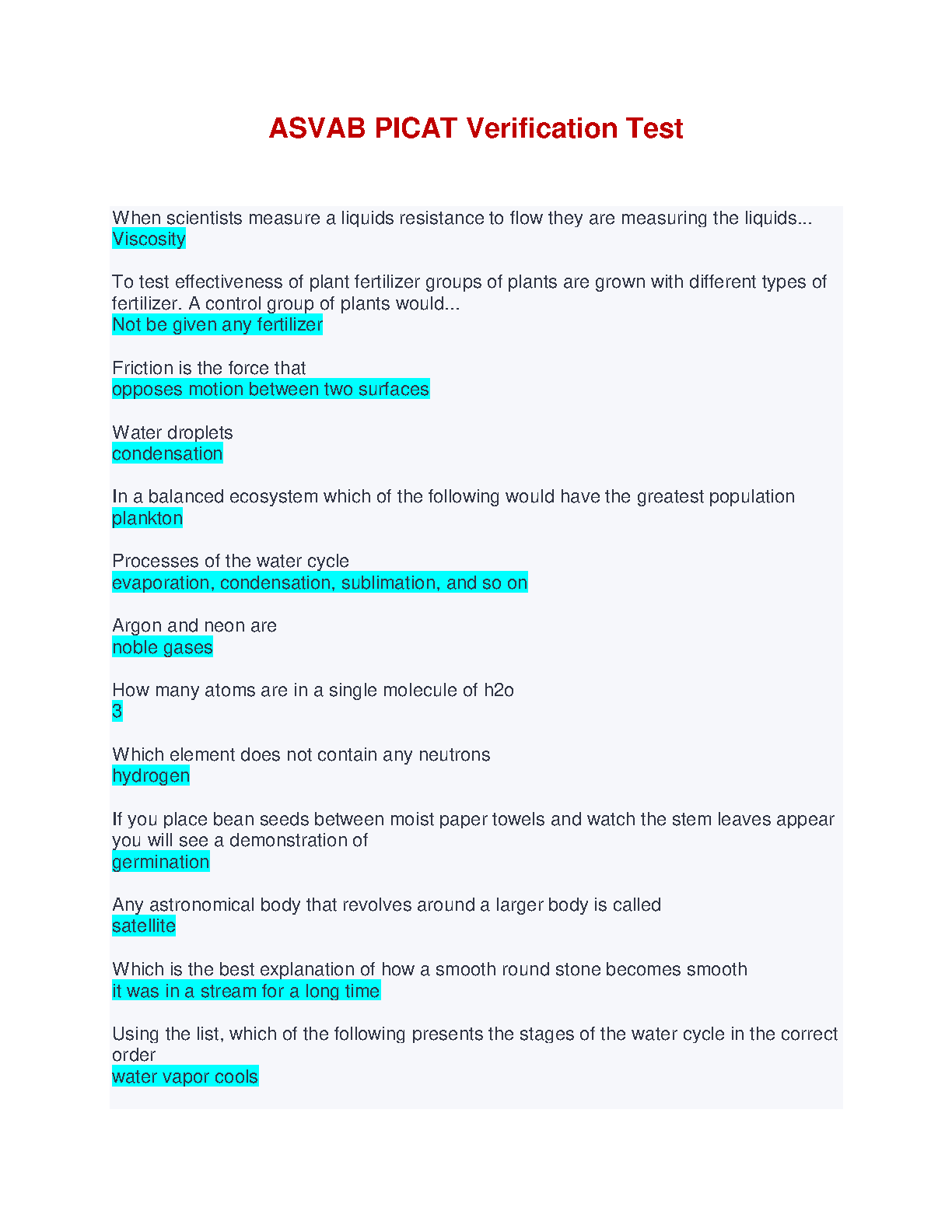 ASVAB PICAT Verification Test: Practice Questions for Success