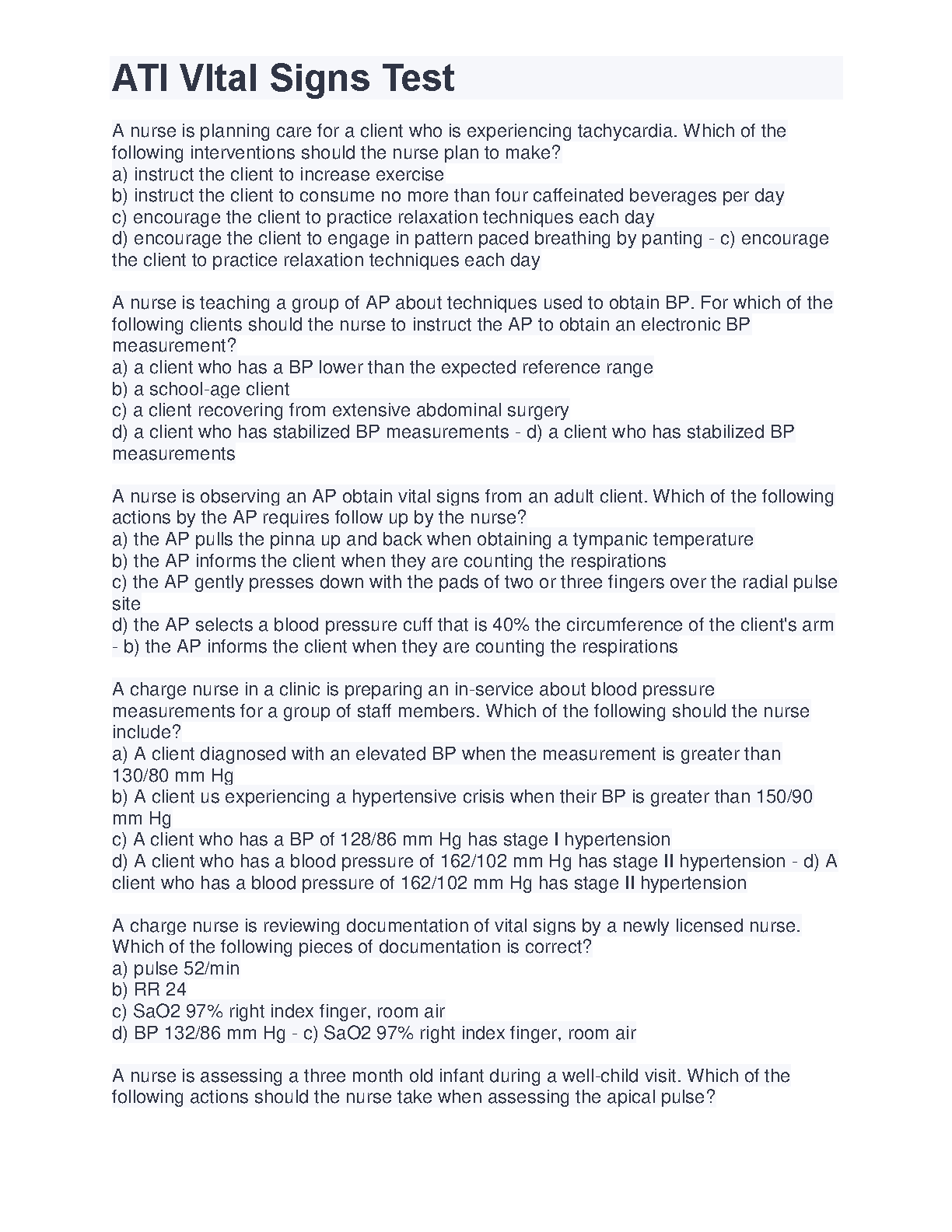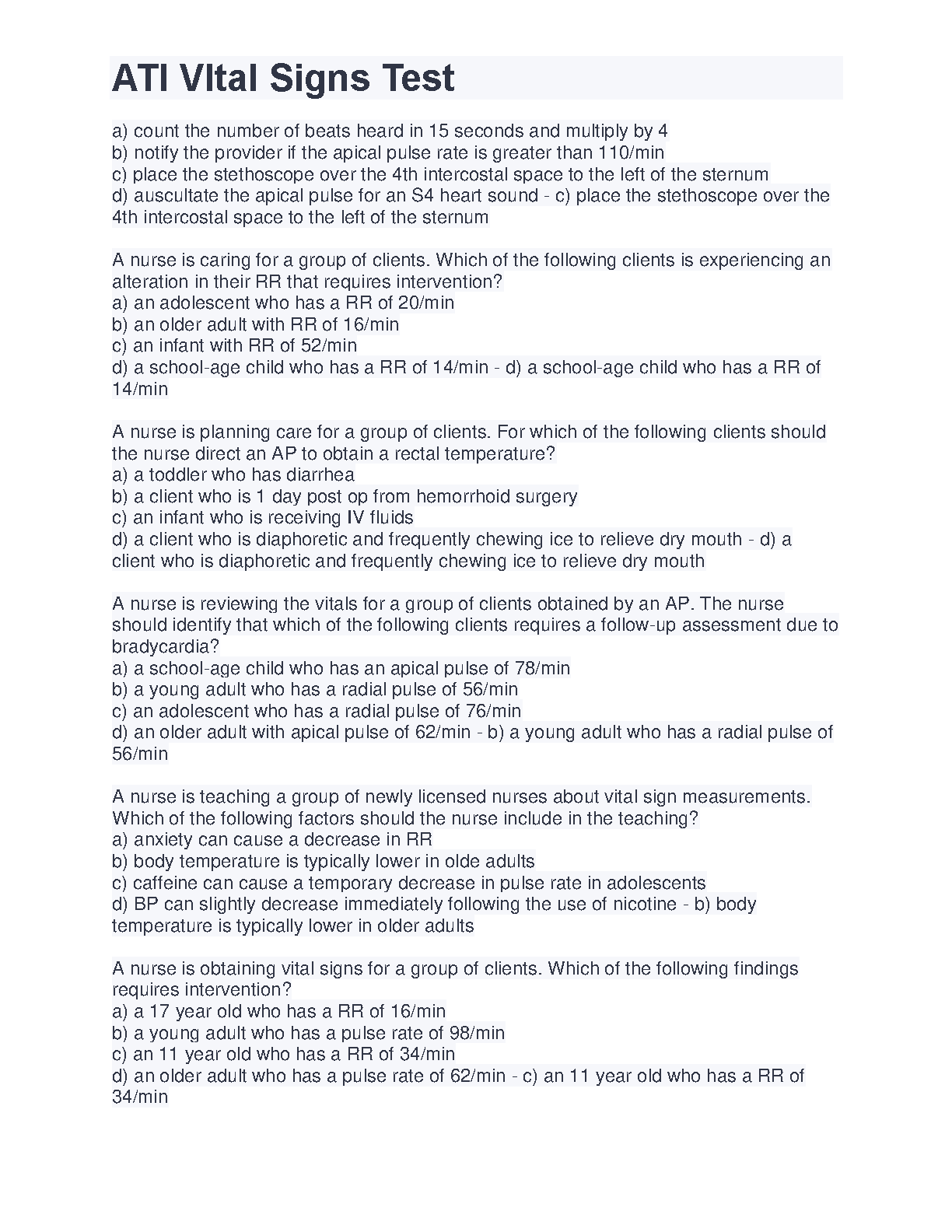 Ace your nursing exams with this comprehensive ATI Vital Signs Test guide! This resource features a detailed breakdown of vital signs concepts, practice questions, and real-world scenarios, designed to help you confidently pass your exams on the first attempt and avoid resits. Learn how to accurately assess and interpret vital signs, identify common errors, and understand the significance of vital signs in patient care. Prepare for success with this essential study tool.